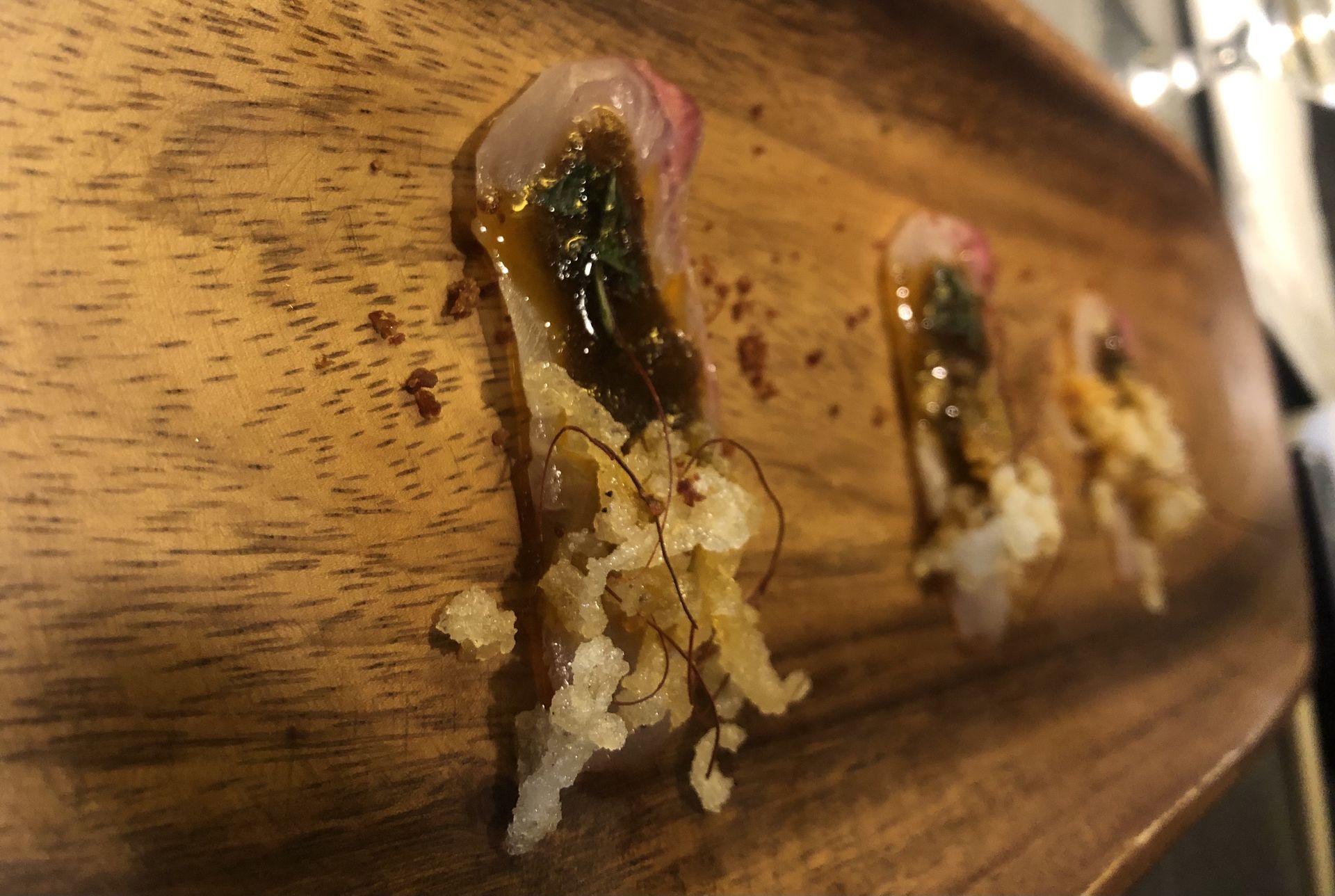 Usuzuki de pescado blanco en adobo gaditano, es comerte un pescaíto frito, pero invertido.