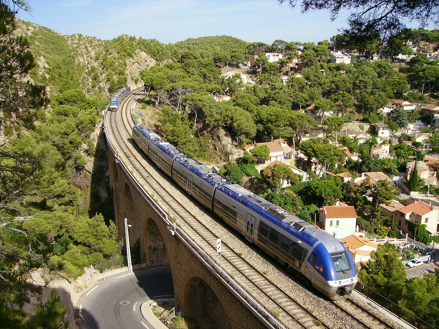 Un tren lento que bordea la costa mediterránea francesa y pasa por ciudades cuyos nombres suenan ya a glamour: Cannes, Antibes, Mónaco. A un lado de las vías, el centelleante mar; al otro, espectaculares acantilados intercalados con las preciosas ciudades costeras de la Riviera francesa. El viaje abarca unos lánguidos 55 km de felicidad ferroviaria