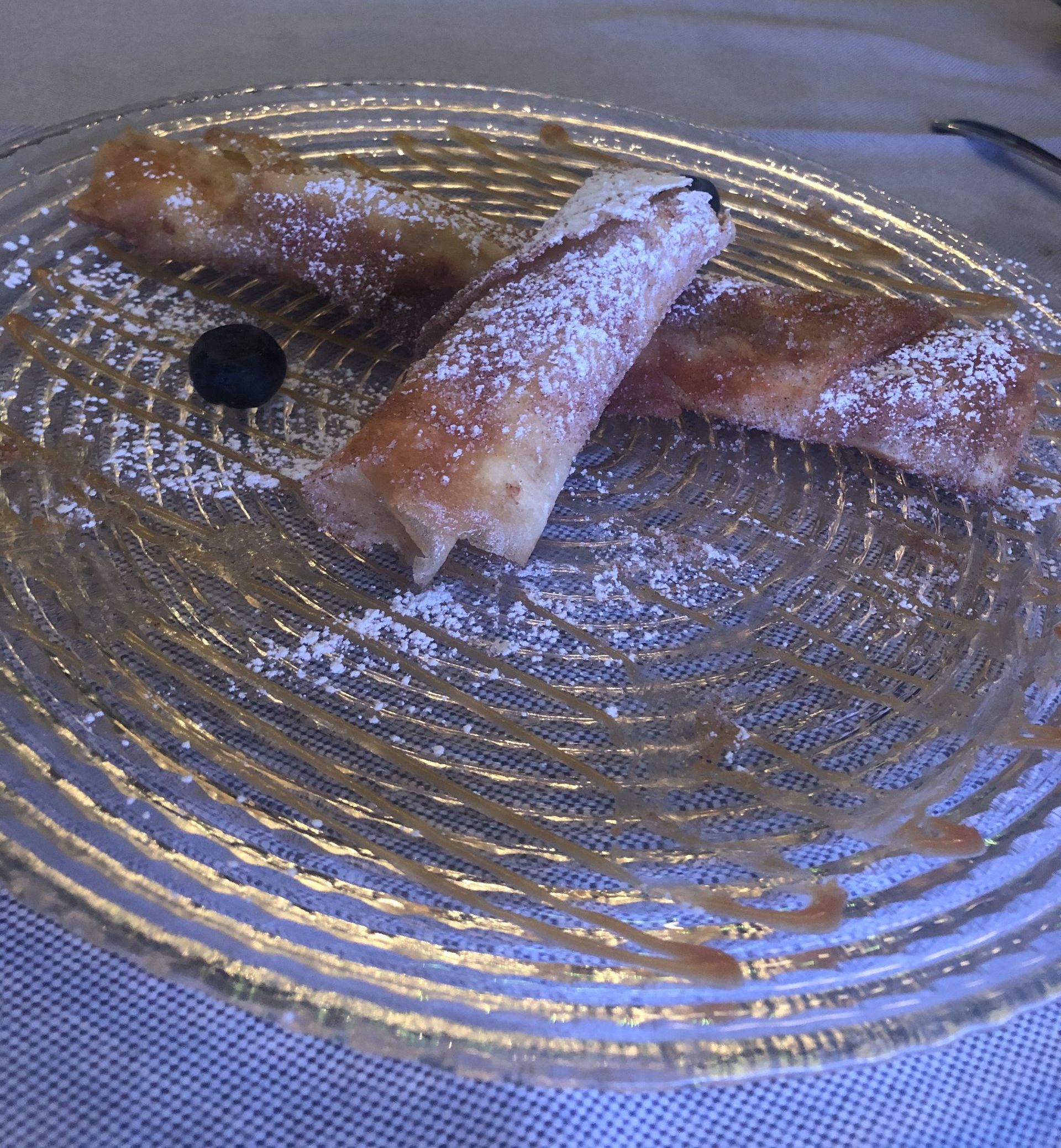 Filloas caseras rellenas de crema pastelera fritas con un toque de canela.