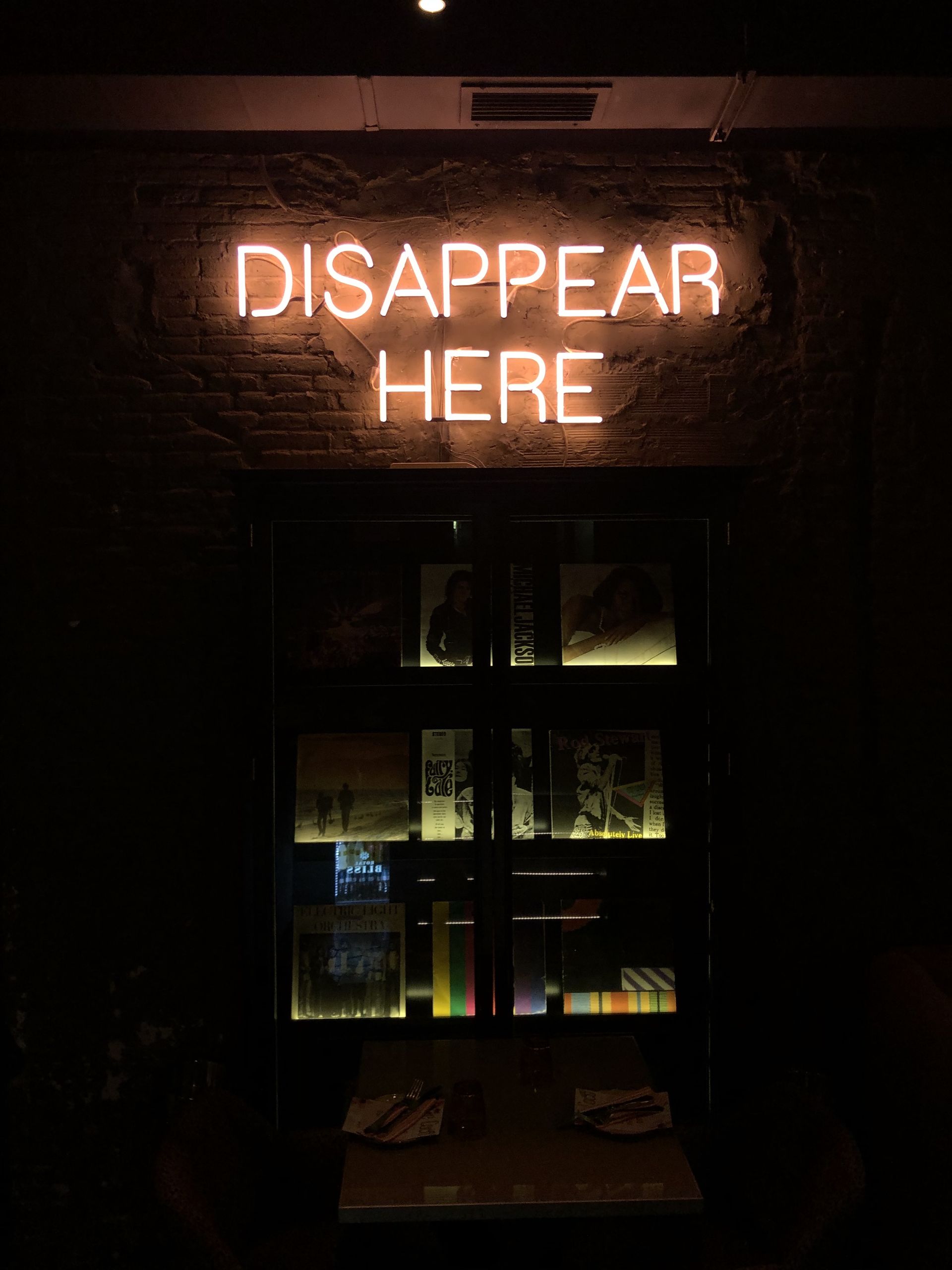 "'Disappear here' - Desaparece aquí", uno de los detalles del club clandestino de Fellina.