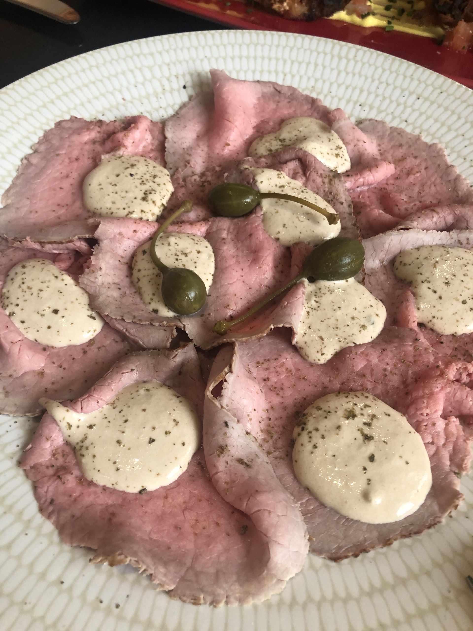 Detalle de la máquina de cortar mortadela con la barra al fondo.