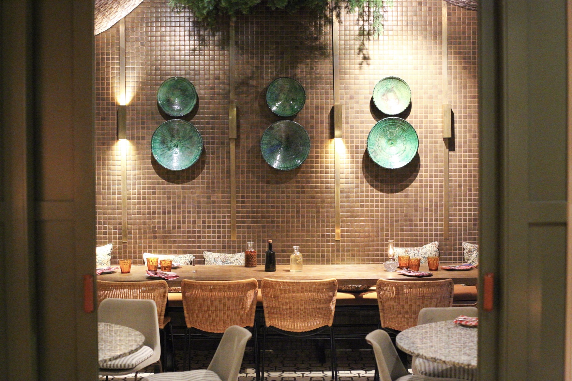 A la salida del baño te encuentras con esta vitrina llena de frascos con licores.