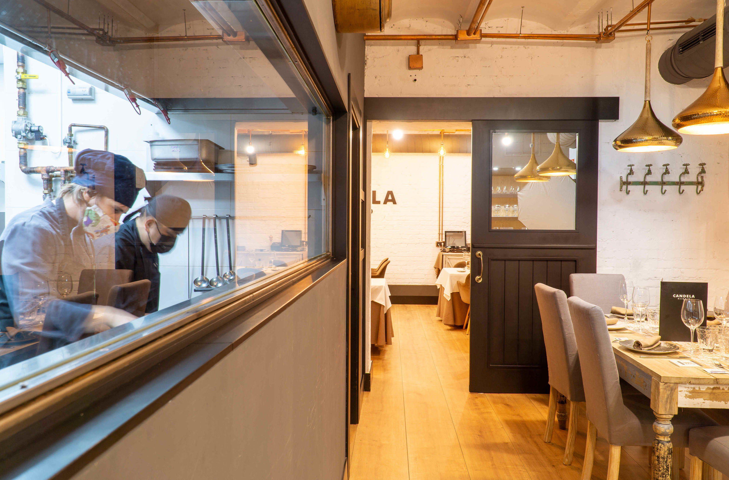 La cocina de Candela está abierta para que el comensal pueda disfrutar del arte de Pedro González y su equipo.