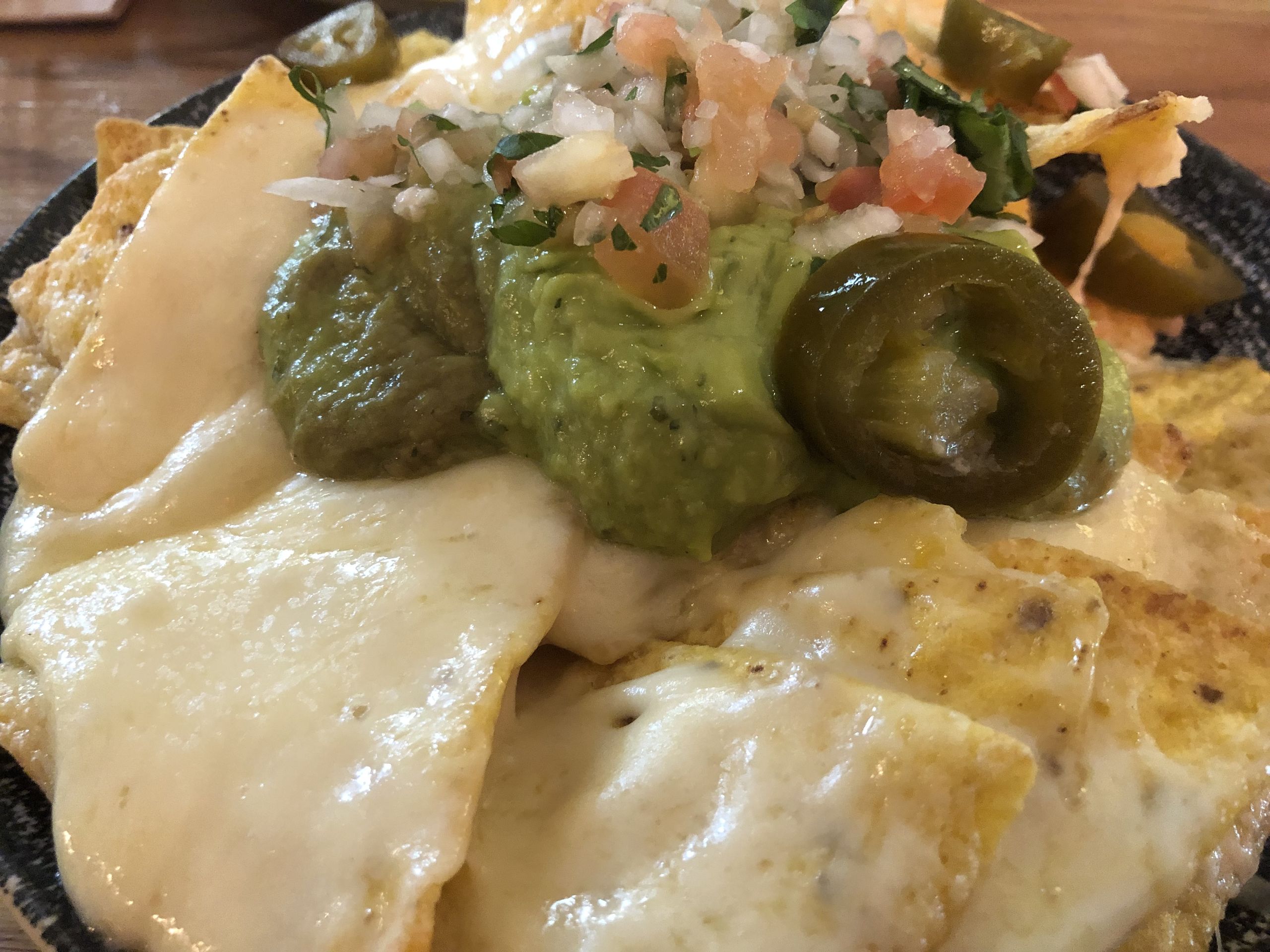 Crujientes nachos de tortillas de maíz bañados con nuestra mezcla especial de quesos derretidos, frijoles rancheros y coronados con fresco pico de gallo, guacamole, crema agria, y jalapeños.