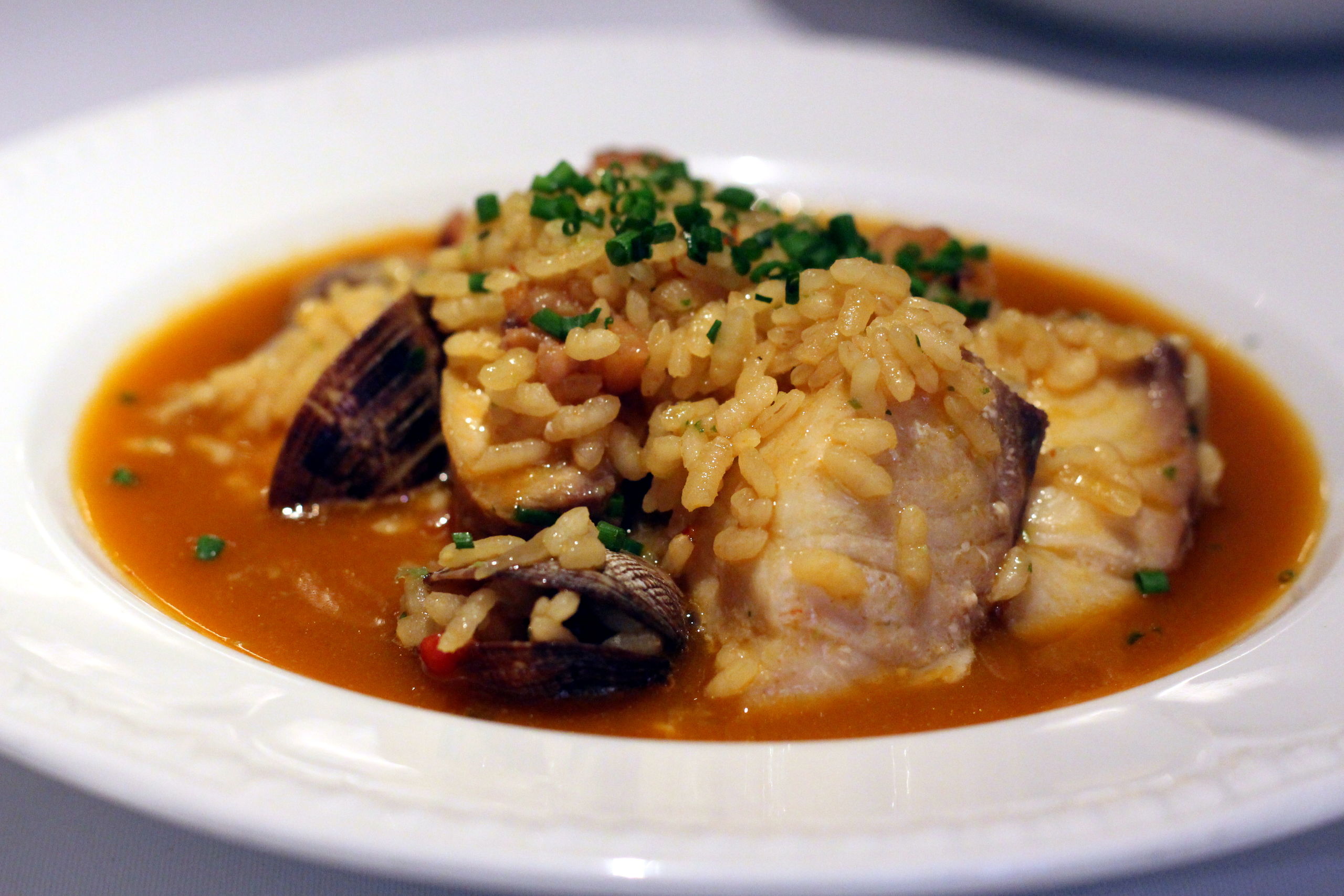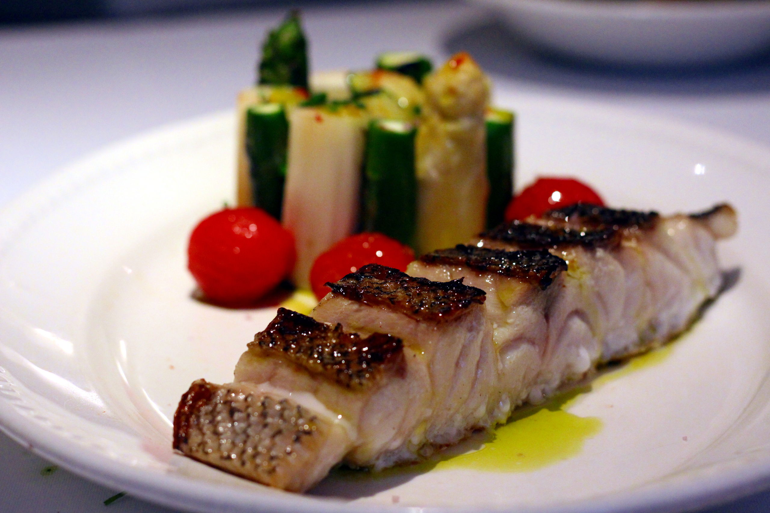 Pescado del día, en este caso mero a la brasa con espárragos blancos y trigueros.