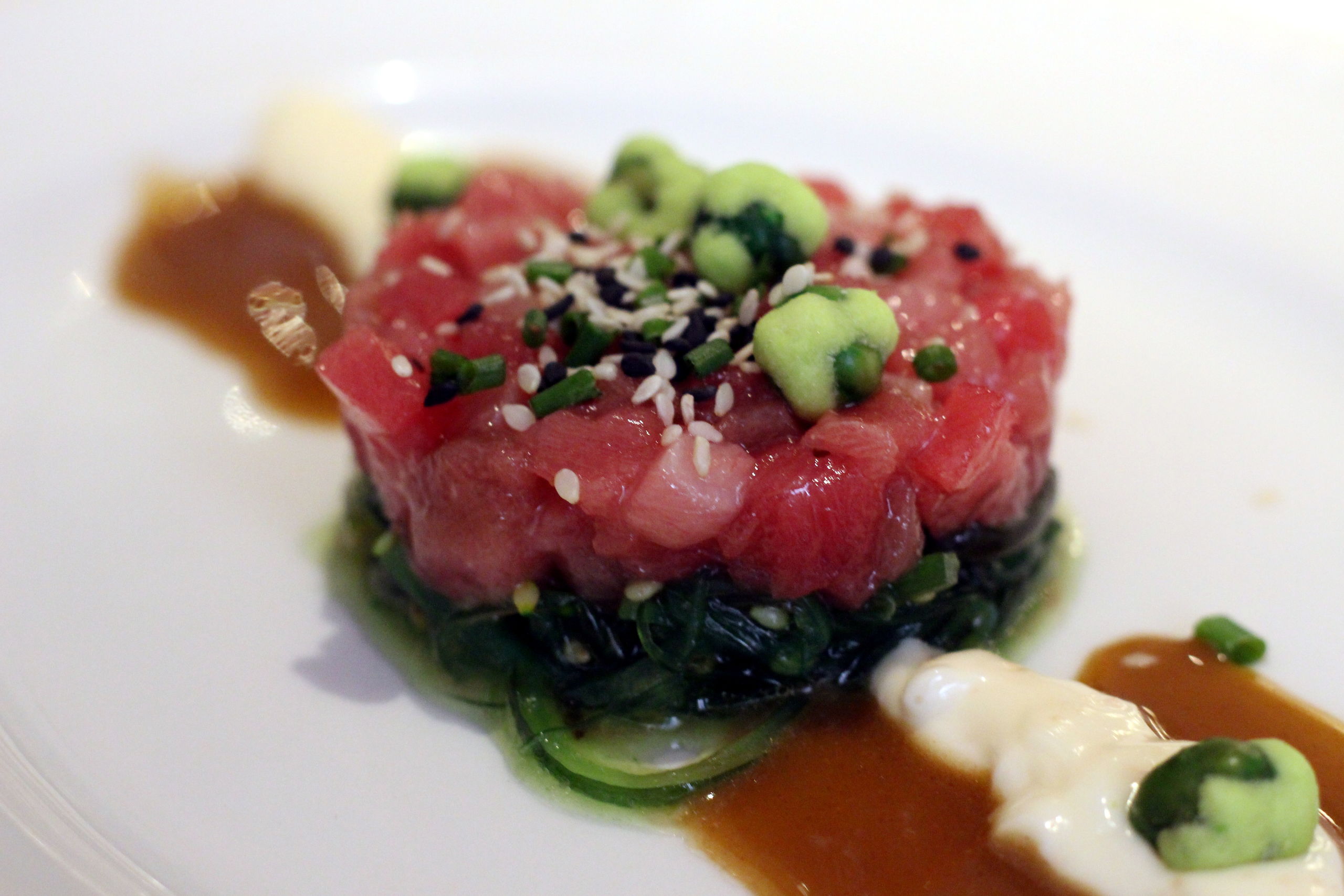 Tartar de Atún Rojo Balfegó con ensalada de alga Wakame y mahonesa de jengibre marinado.