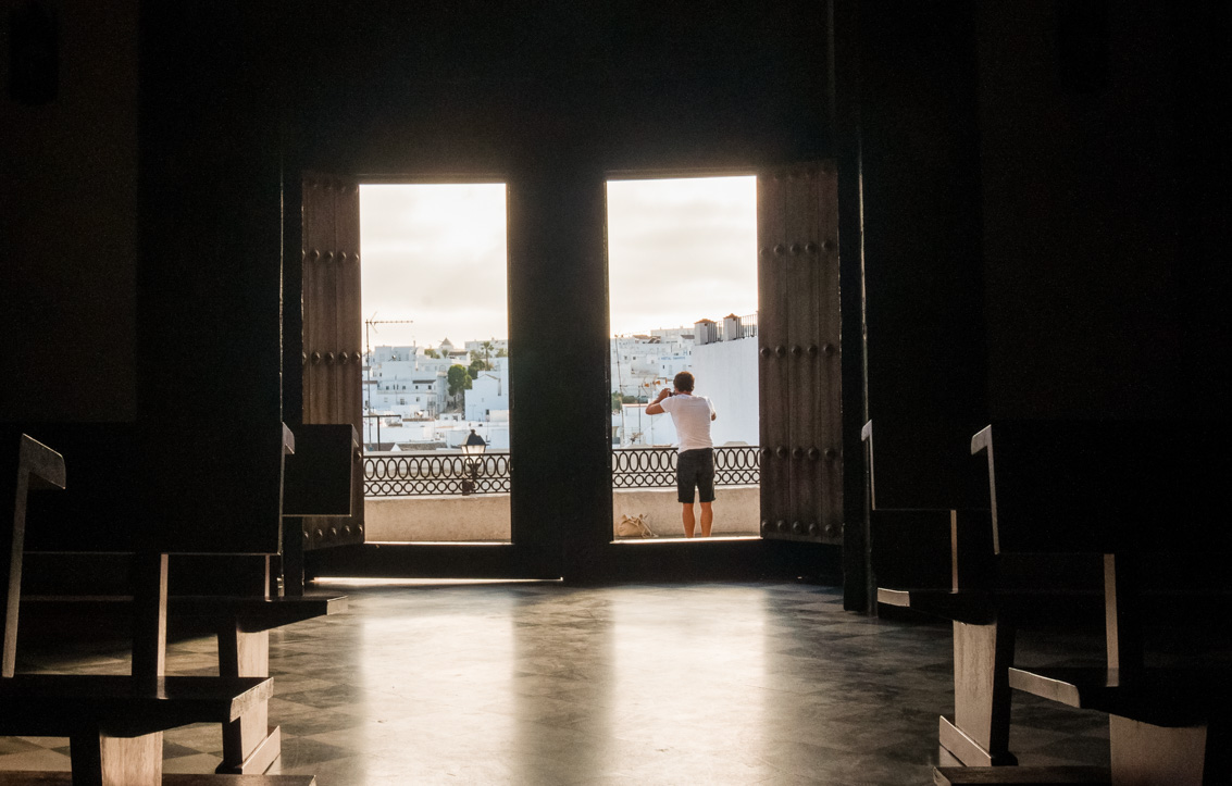 Caminar por sus estrechos callejones es uno de los placeres de Vejer. Esos callejones suelen terminar con una vista del conjunto arquitectónico del pueblo, sus blancas casas sobre la colina.