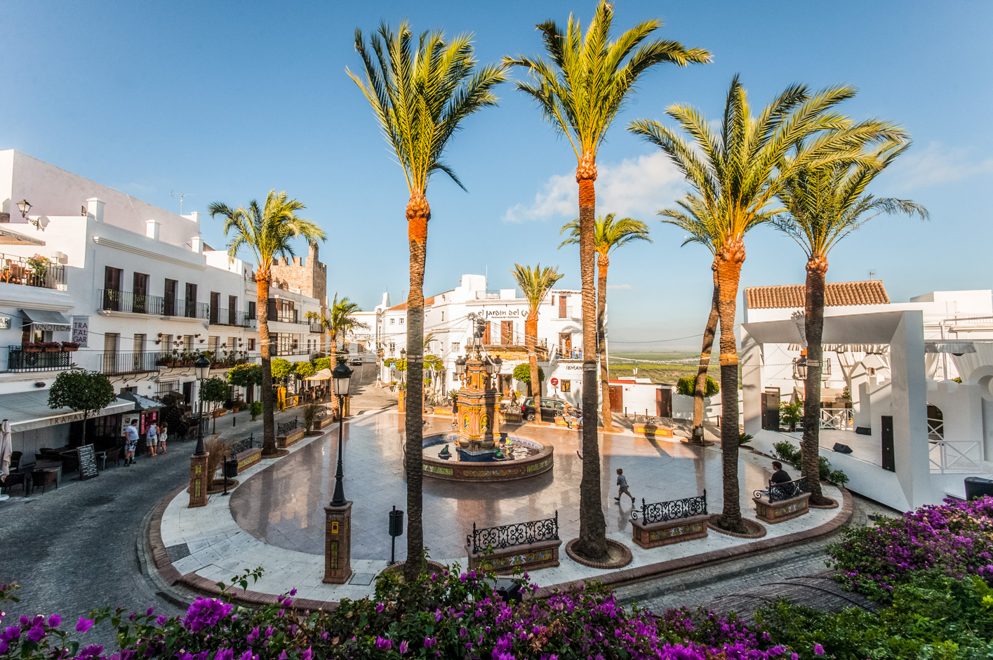 La plaza mayor de Vejer, con su fabulosa fuente en el centro. Uno de los puntos más concurridos del pueblo.