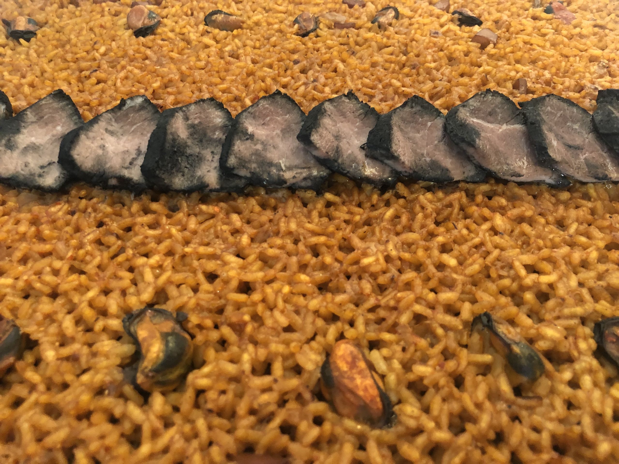 Detalle del arroz de mar y montaña tras los 5 minutos en el horno a 180º.