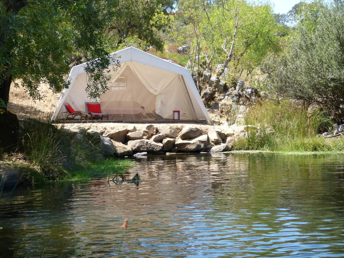 El glamour y acampar en plena naturaleza no está reñido y eso lo saben bien en Azenhas da Seda, uno de los proyectos más grandes de glamping de Portugal. Disfruta del entorno acuático de Ribeira da Seda, en Pavía (Évora) y del cielo nocturno escuchando las cascadas y durmiendo en una cama doble bajo una gran carpa, ¡comodidad máxima garantizada!