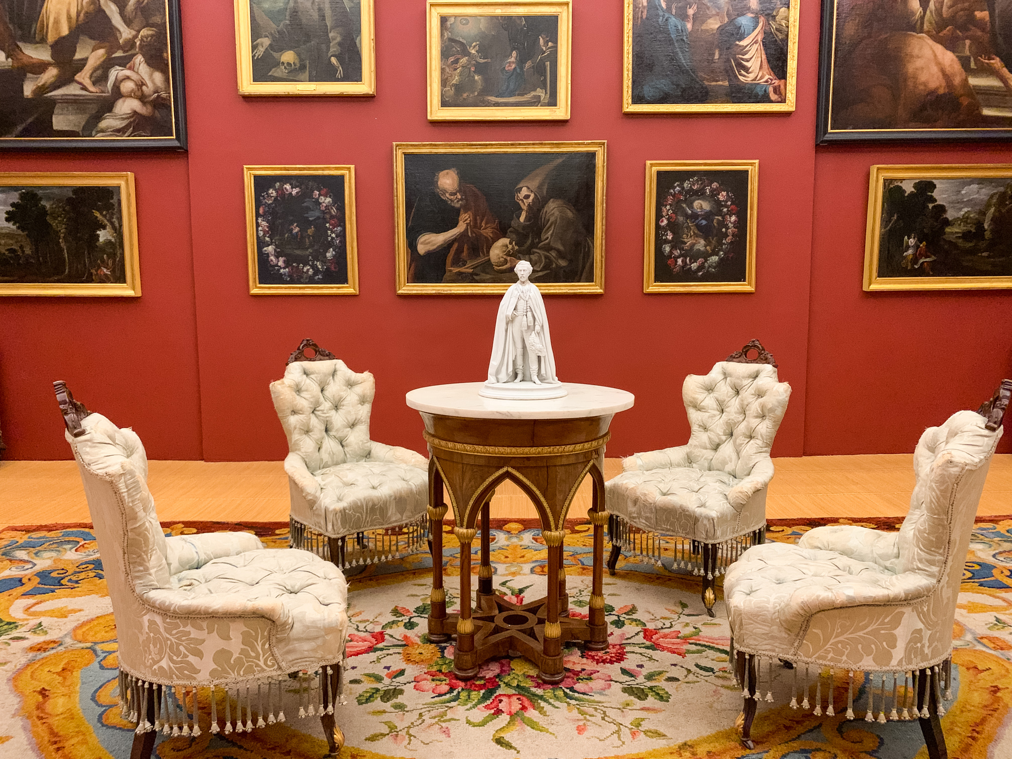 El Museo Nacional del Prado mantiene depositados cinco cuadros en Riofrío. Además, se puede ver su cuidado mobiliario real.