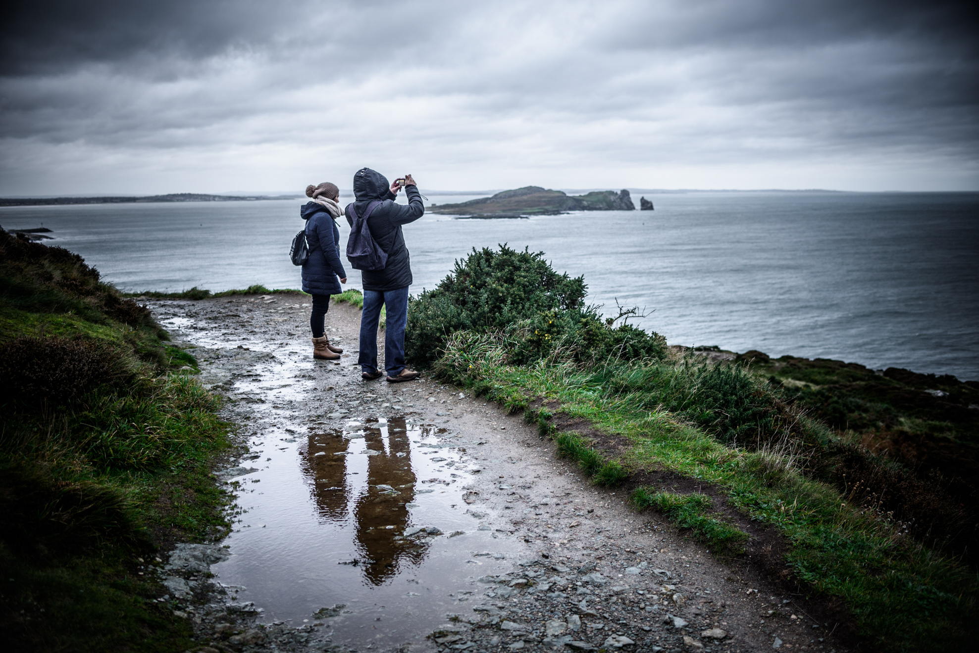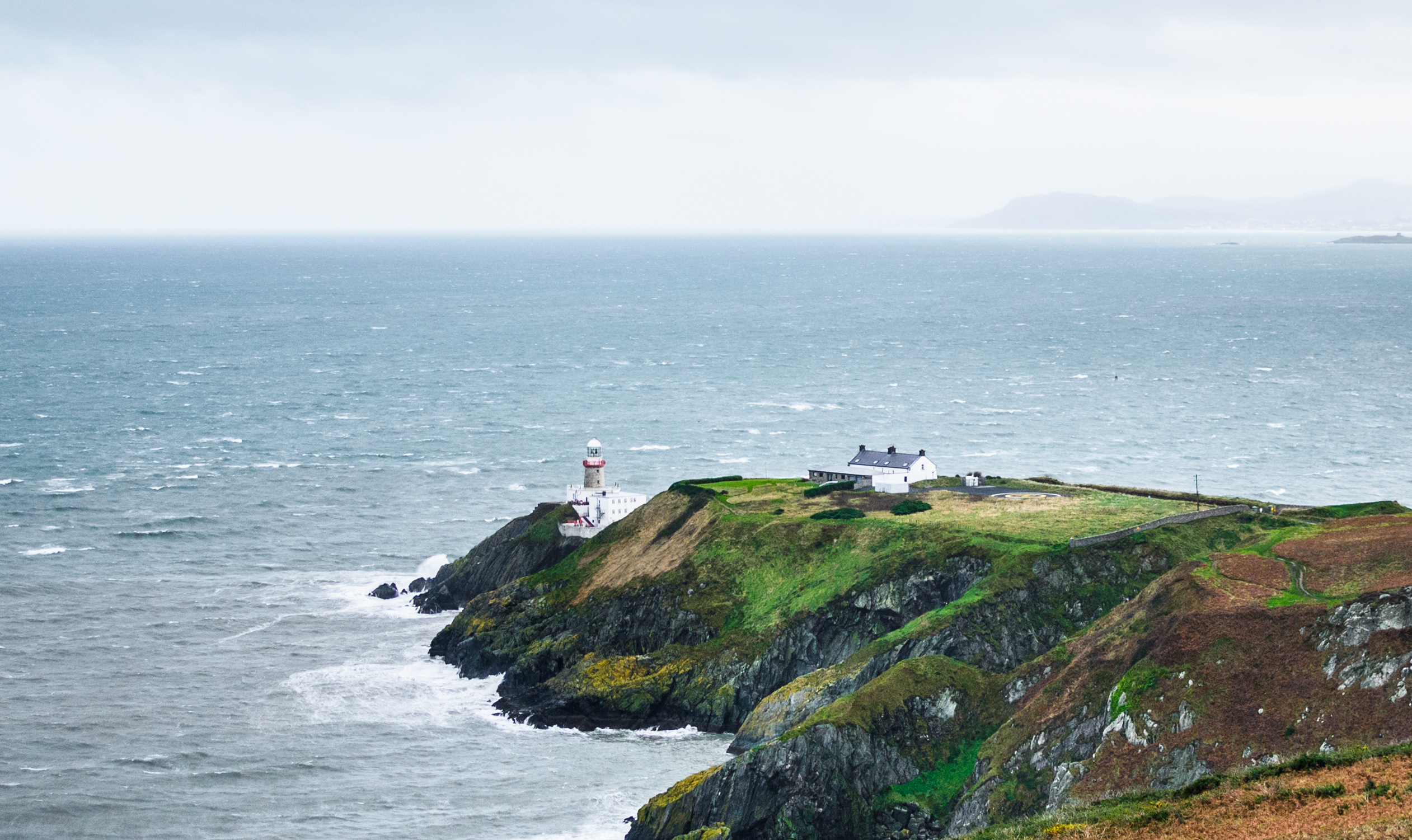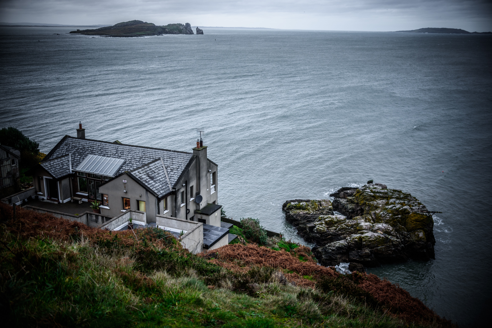 Desde uno de las rutas que recorren la costa se observa la pequeña isla frente a Howth a la que se conoce como el Ojo de Irlanda (Ireland Eye), además de algunas casas al filo de los acantilados que recuerdan a una película de suspense.