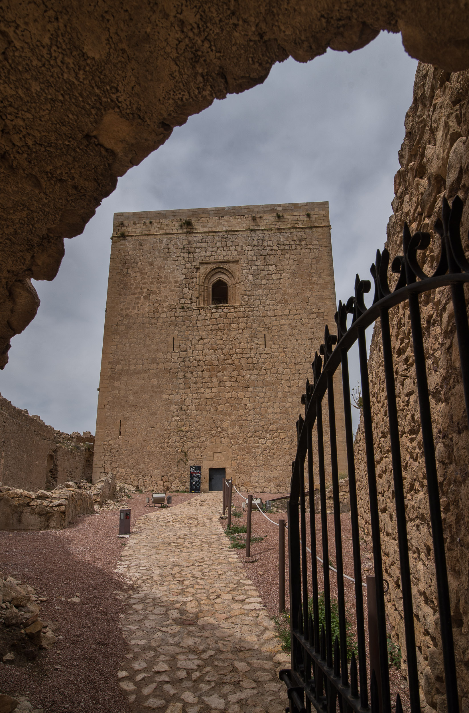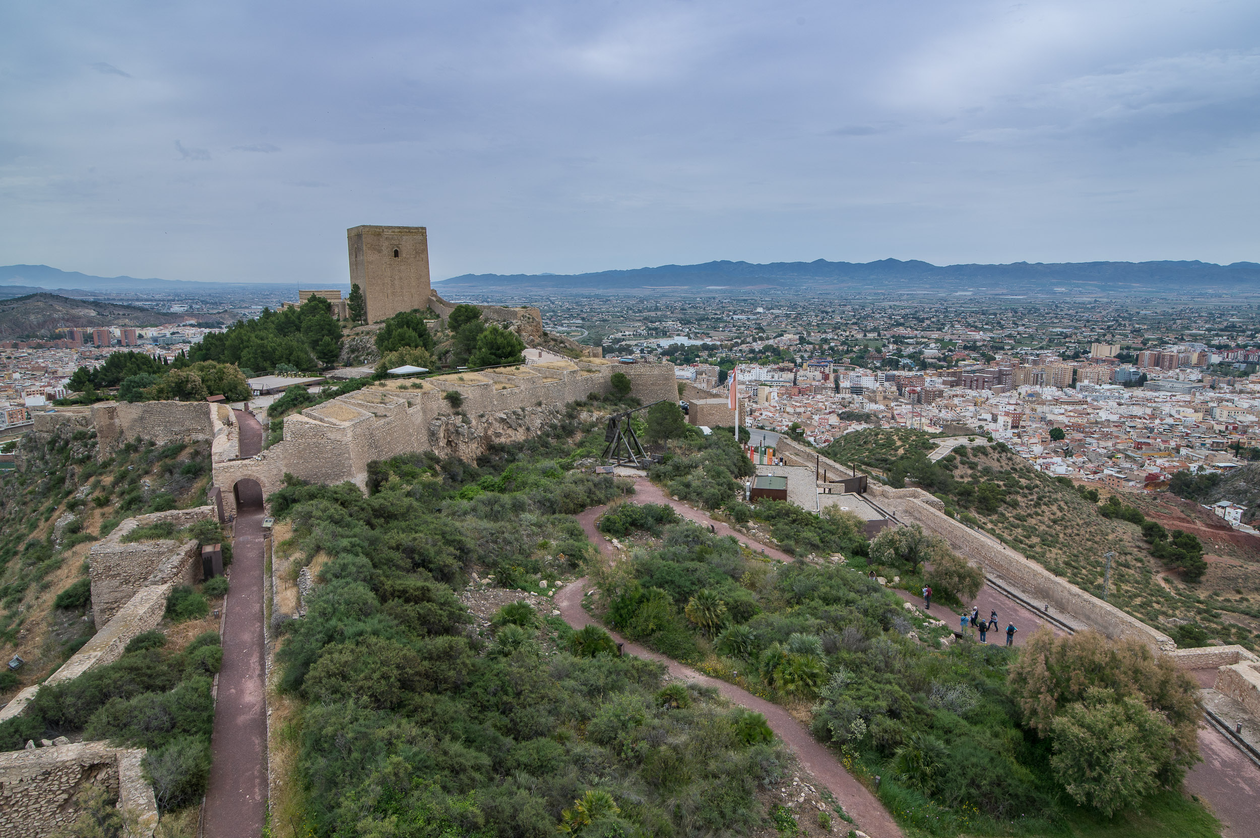 La Fortaleza de Lorca, con la torre Alfonsina y la ciudad al fondo, todo visto desde la Torre del Espolón.