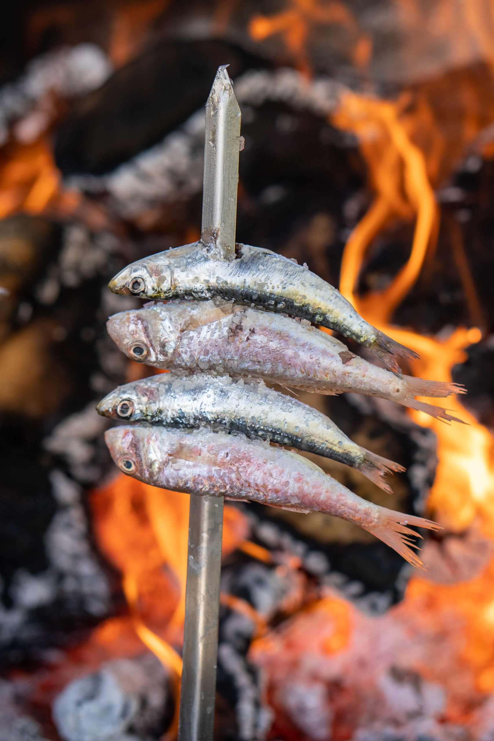 La barca donde se elaboran los espetos, en este caso con una lubina.