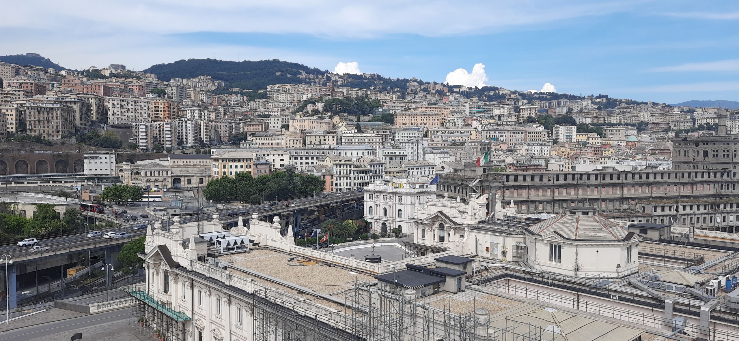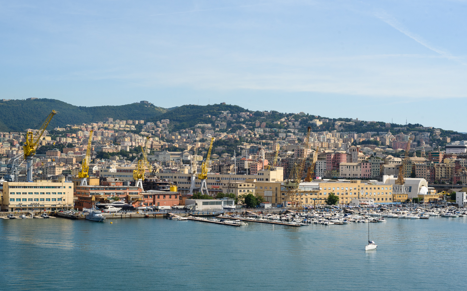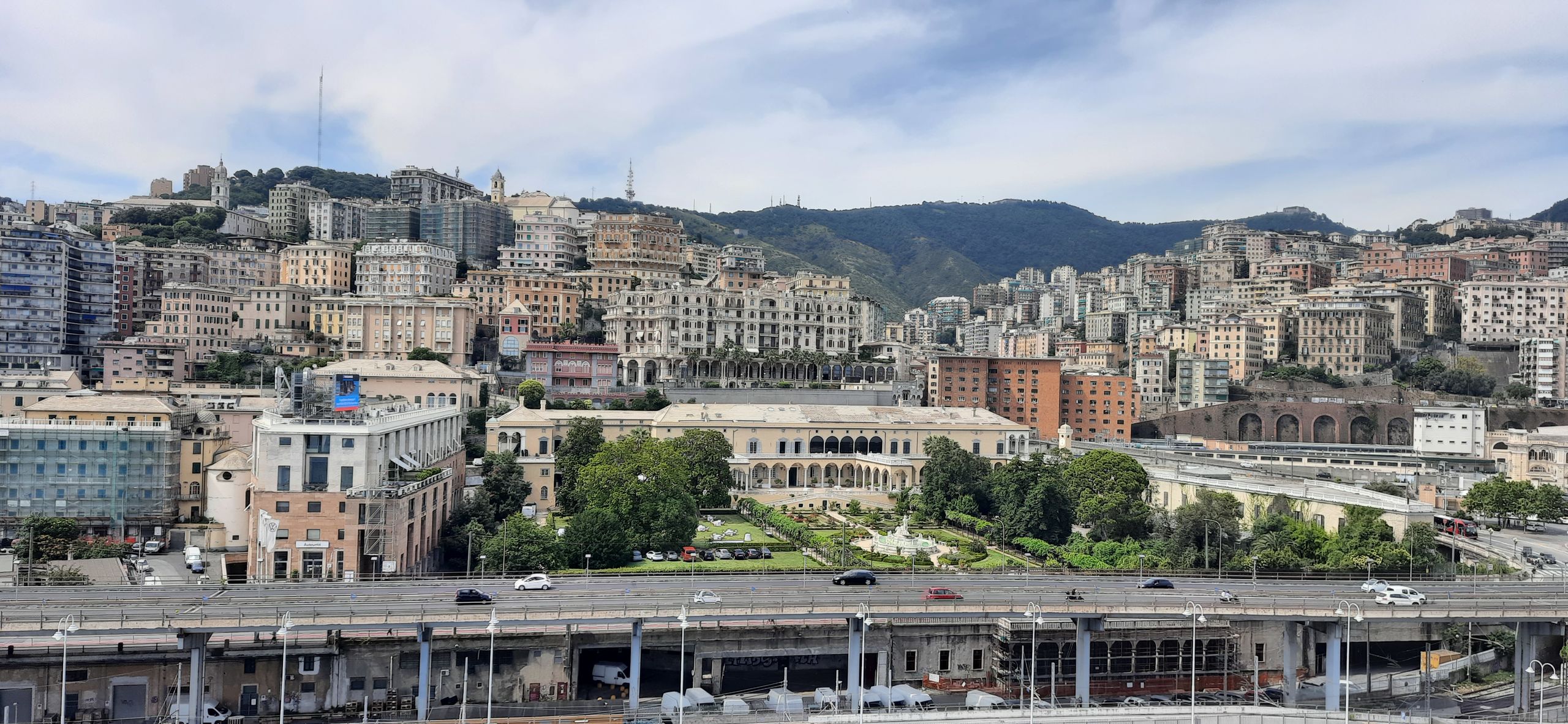 Una panorámica de Génova desde el puerto de cruceros. Las fachadas desgastadas y con tonos grises son apreciables desde todos los puntos.