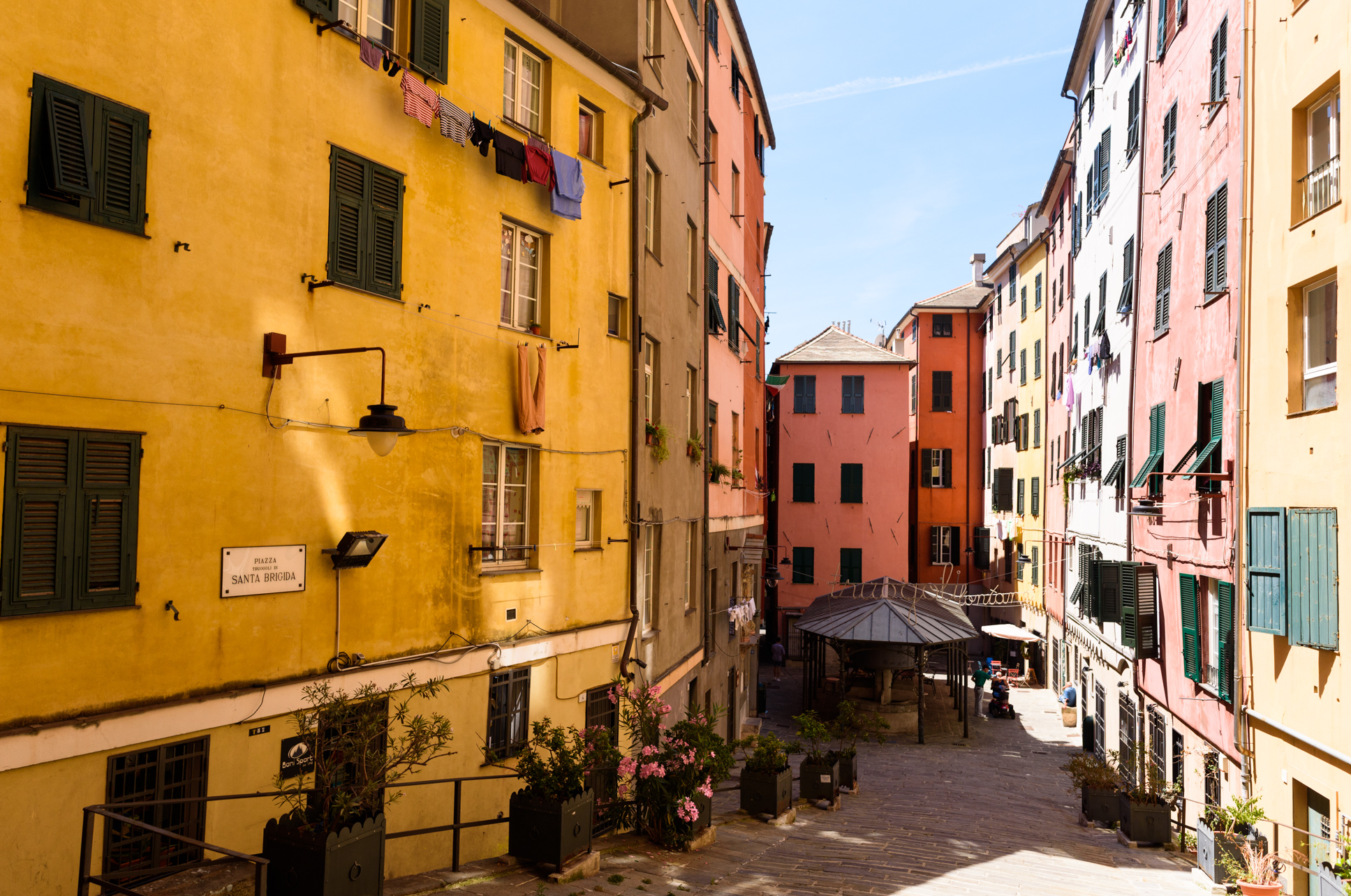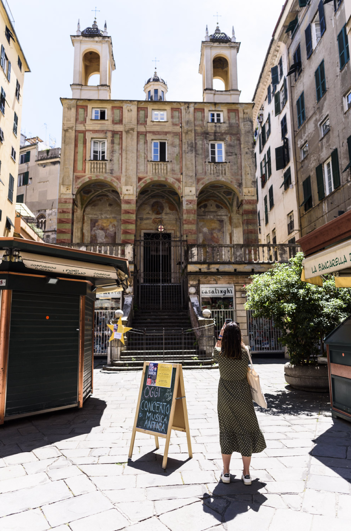 Piazza de Santa Brigida. Esta plaza se encuentra en el corazón del centro histórico de Génova, de origen medieval, caracterizada por un laberinto de calles estrechas e infinitas y edificios de colores, estrechos y altos, que difícilmente dejan pasar la luz del sol.