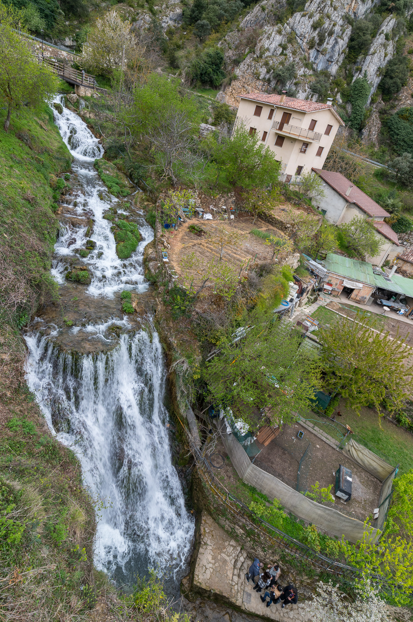 El curso del río Molinar, entre ambas cascadas y encajonado entre las casas del pueblo.