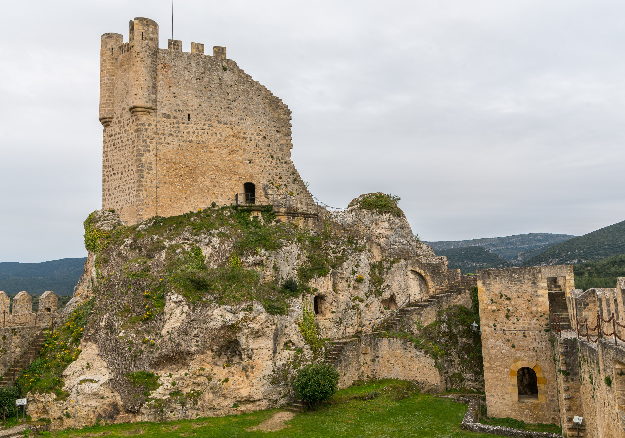La torre del castillo se eleva sobre la roca más alta de la villa.