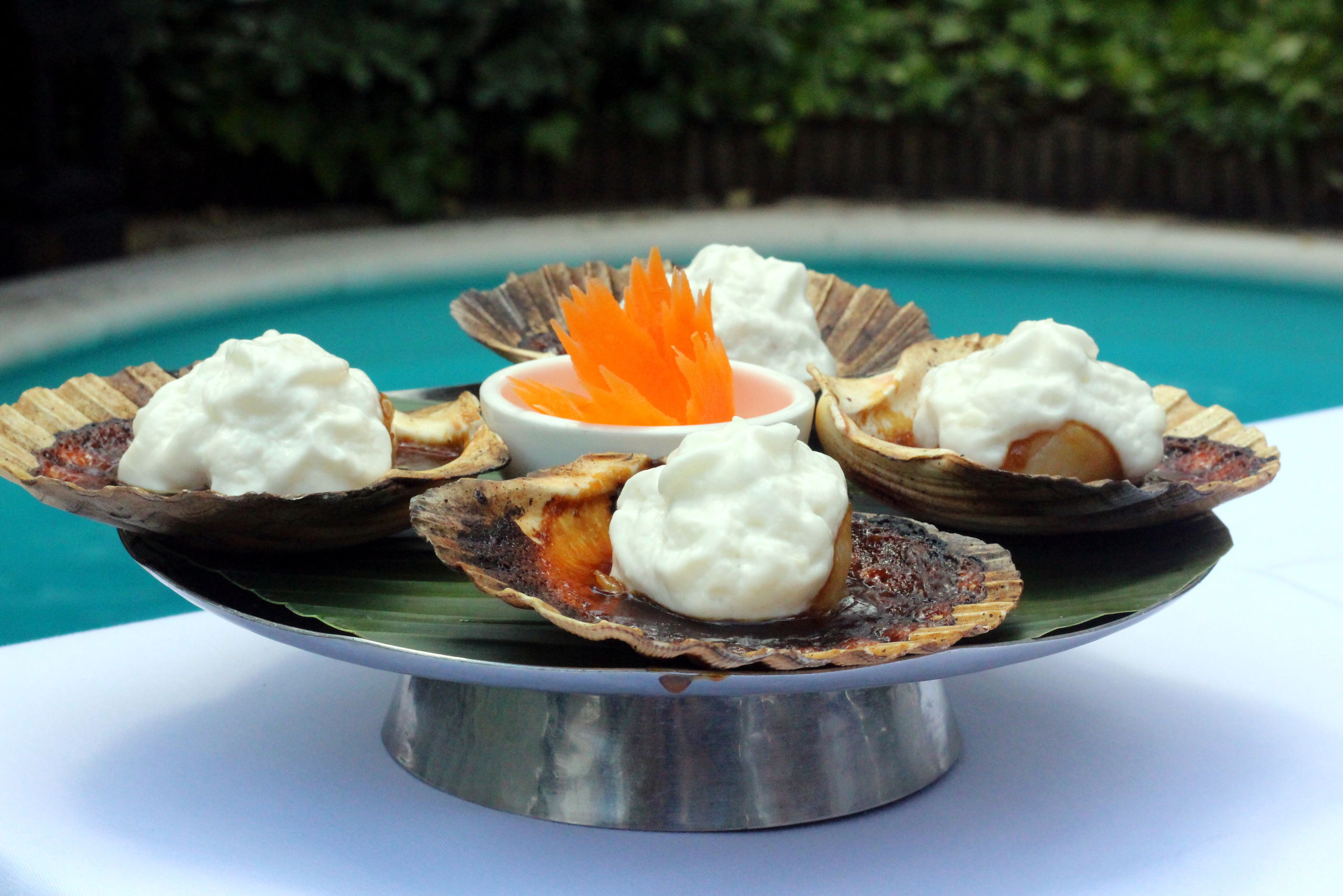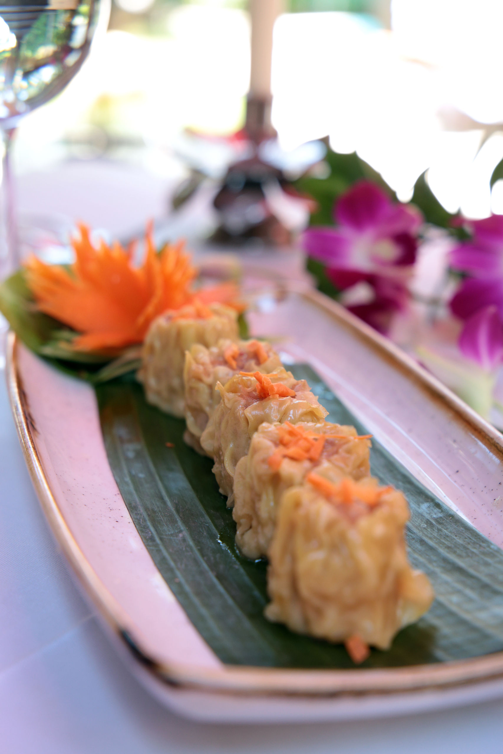 Kanan gib khung, empanadilla de langostino acompañado de salsa de pescado ligeramente picante aromatizado con lima kafir.