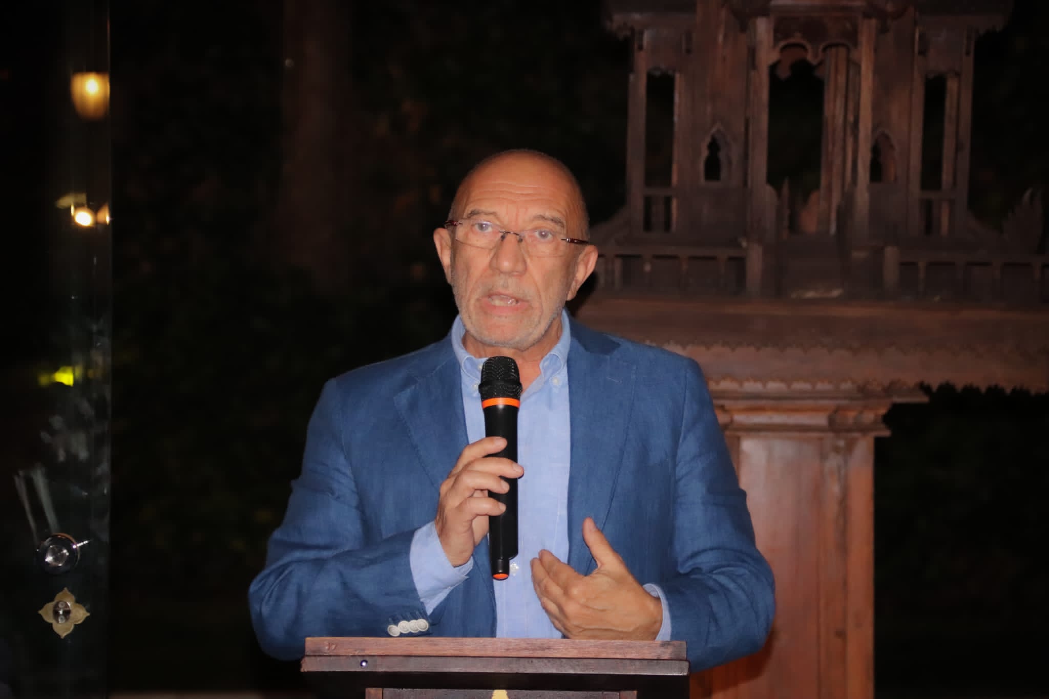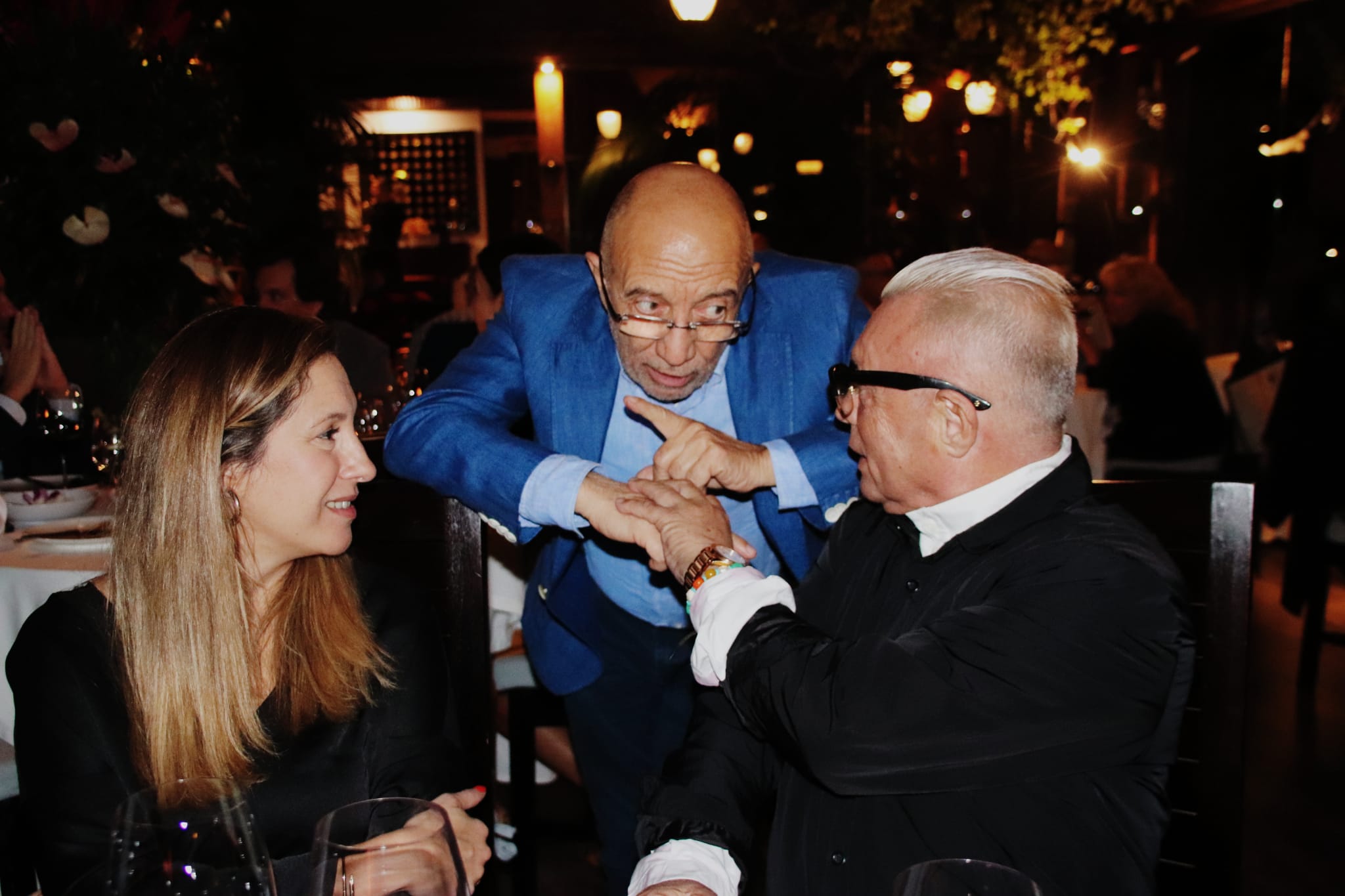 El bodeguero Javier Zaccagnini, de Sei Solo, comentando sus vinos con dos de los invitados.