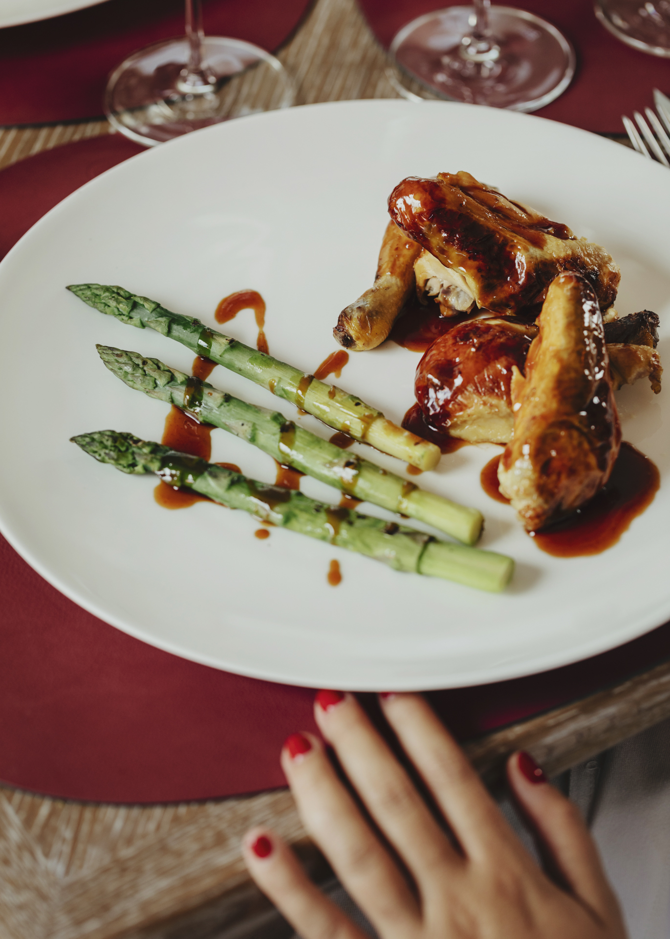 Picantón de corral en dos vuelcos relleno de foie gras y trufa.