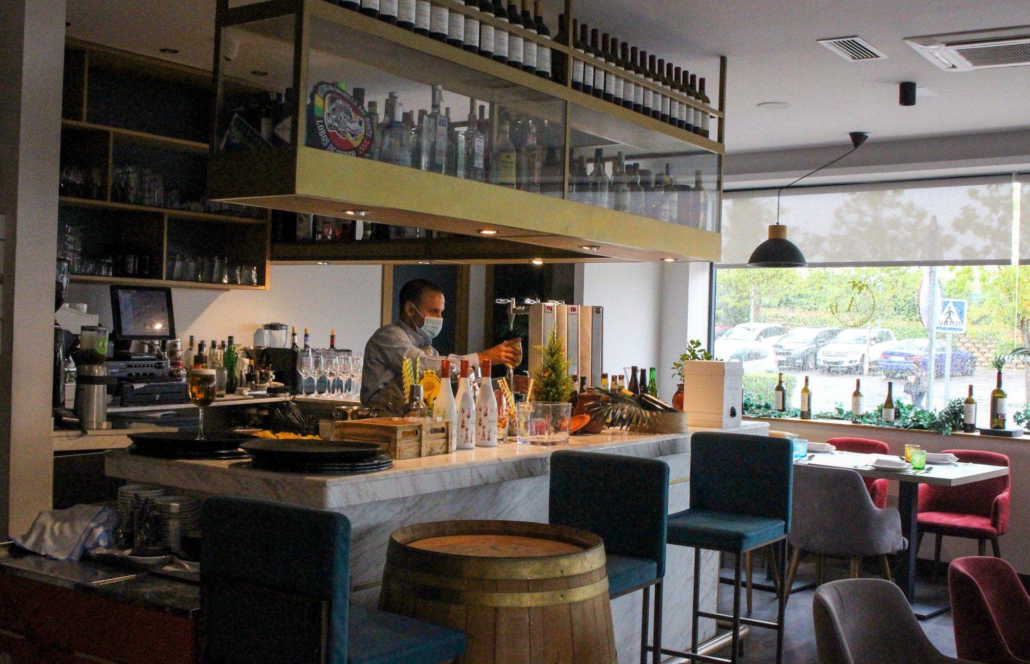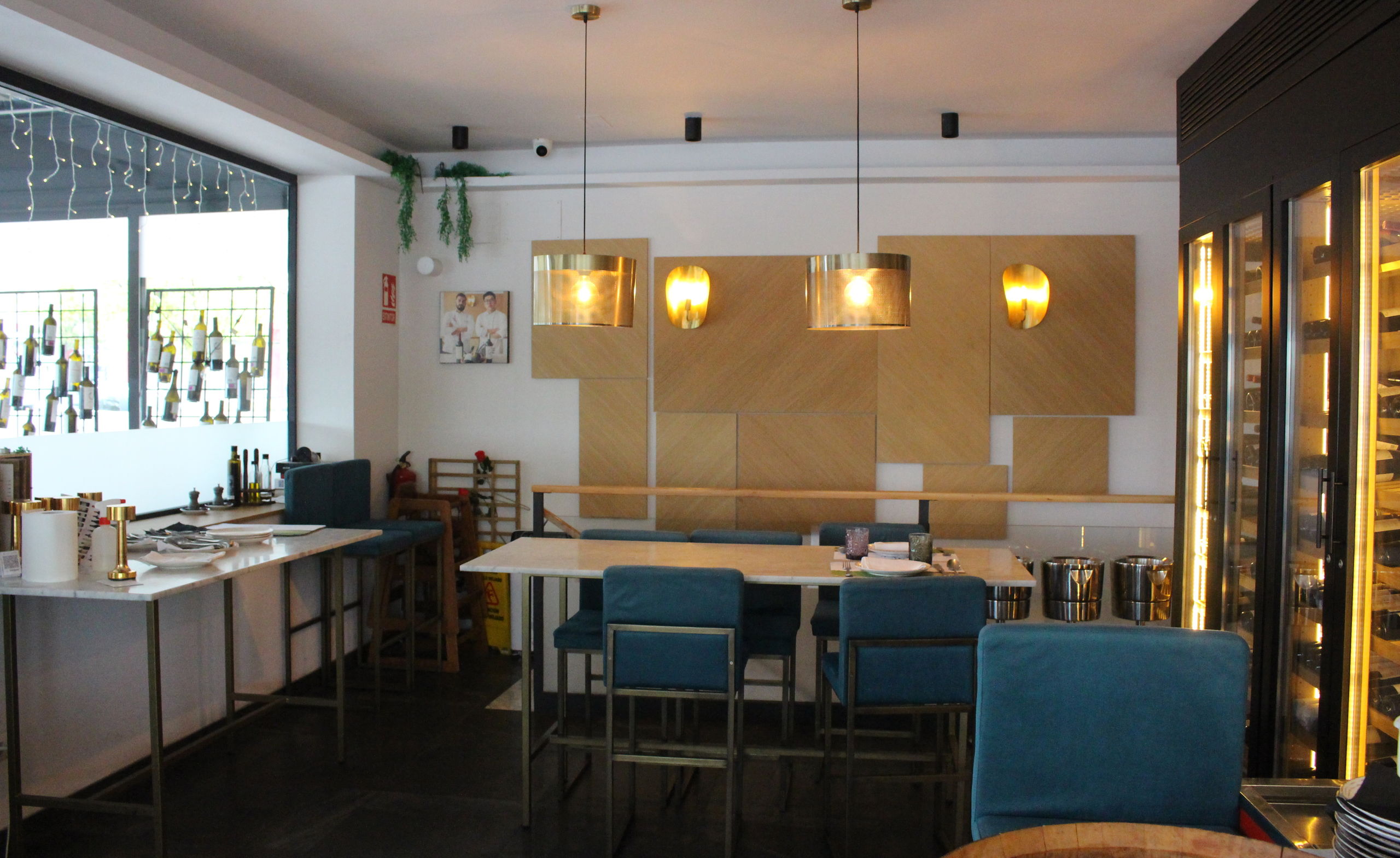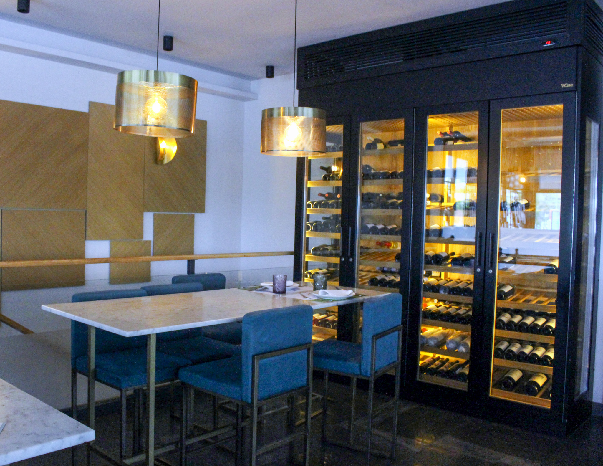 Un rincón del restaurante Alilian con su cava de vinos y espumosos.