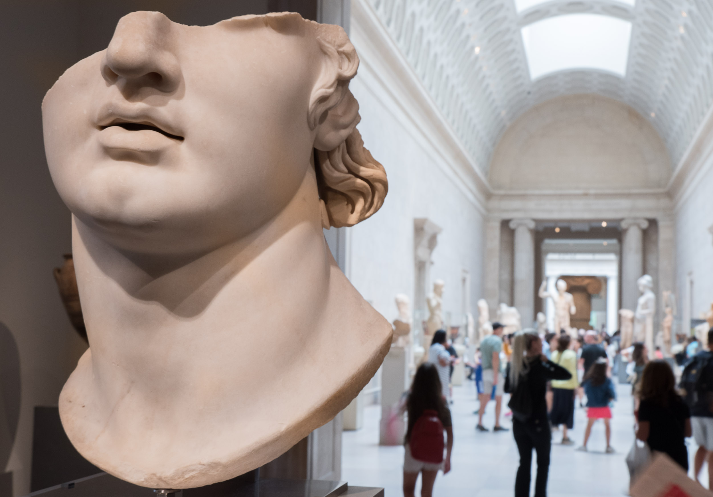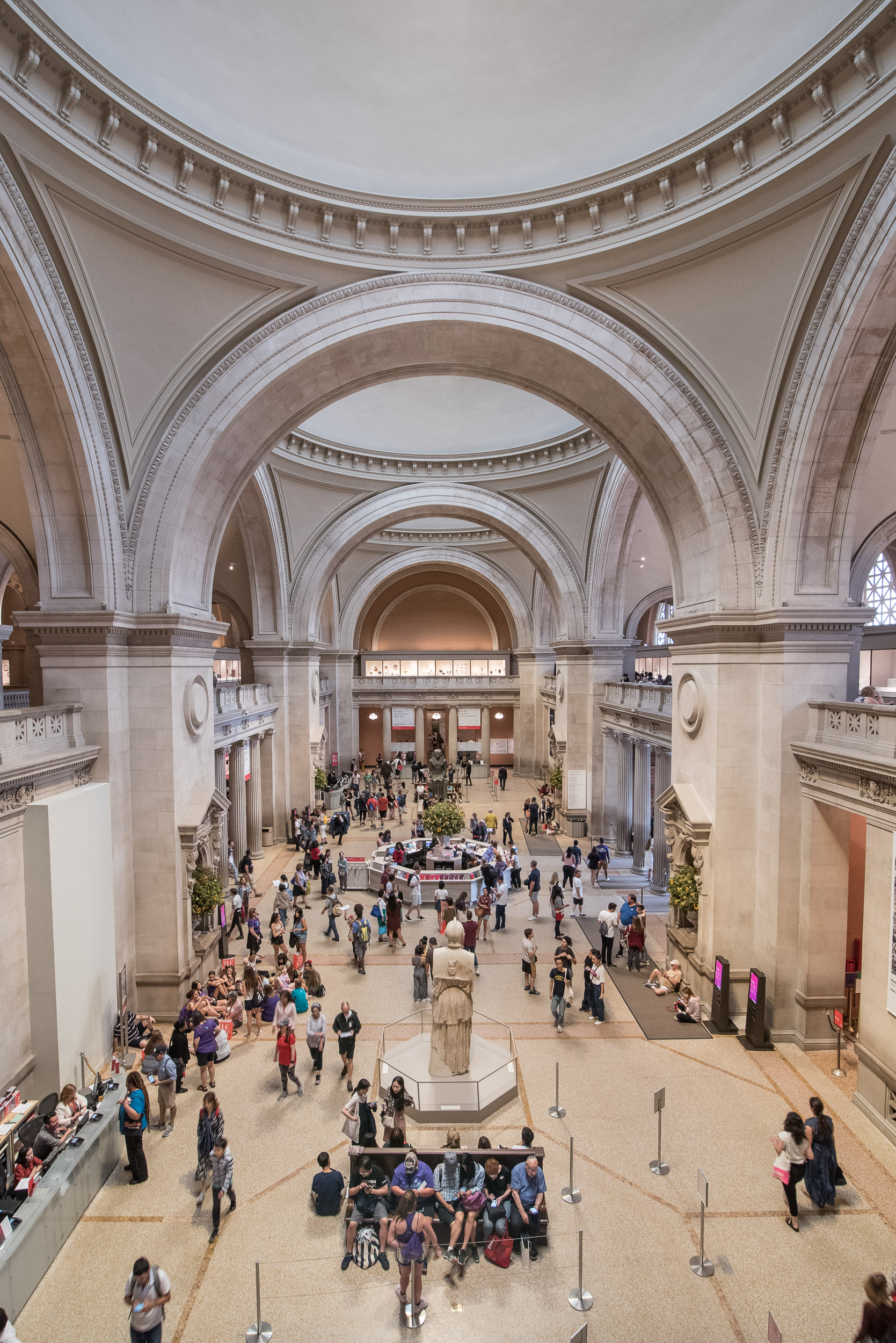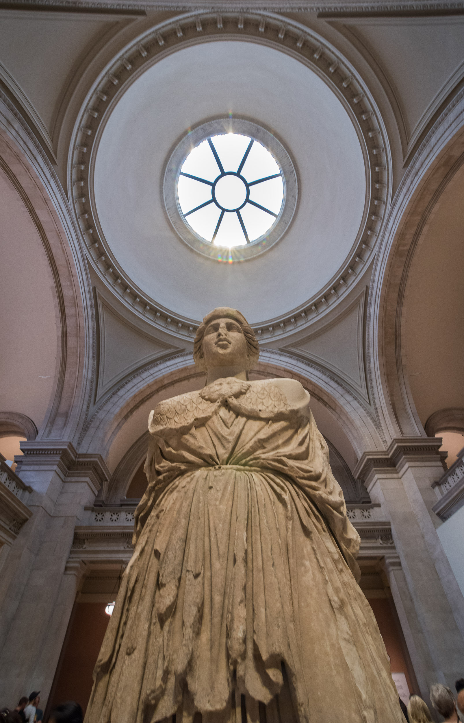 Una de las estatuas monumentales en el hall de entrada del Met.