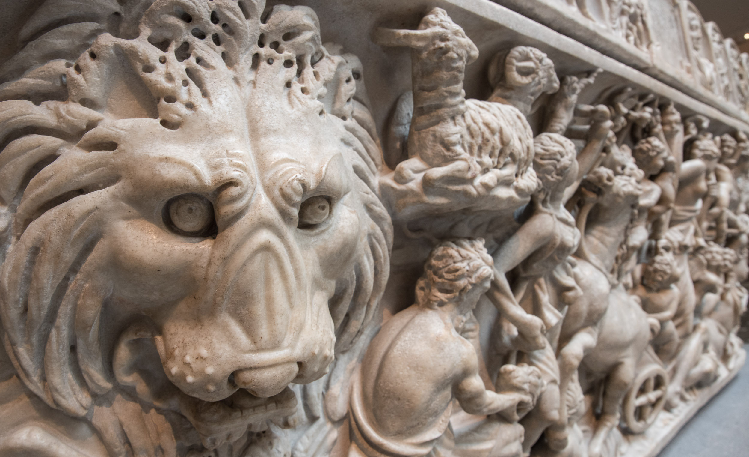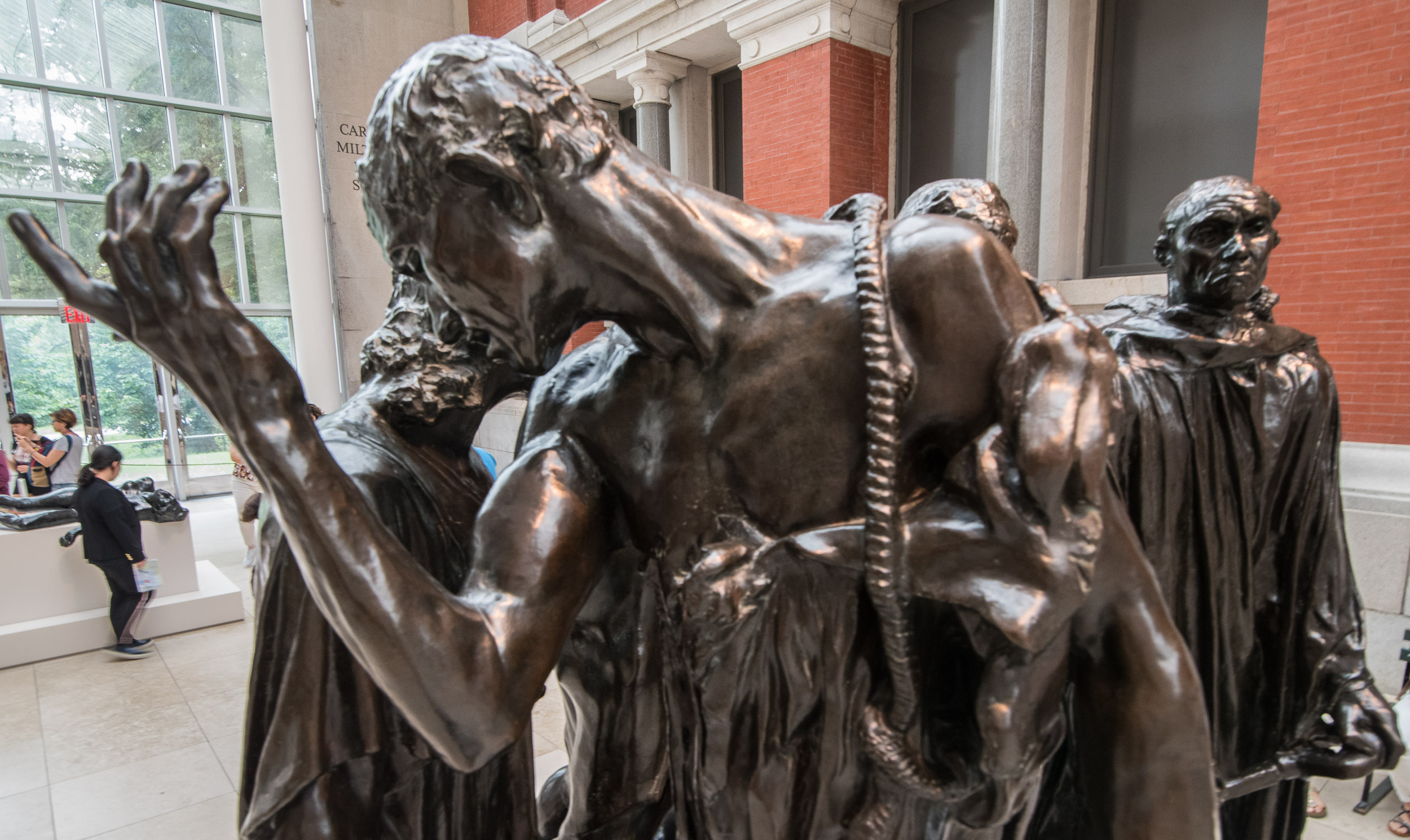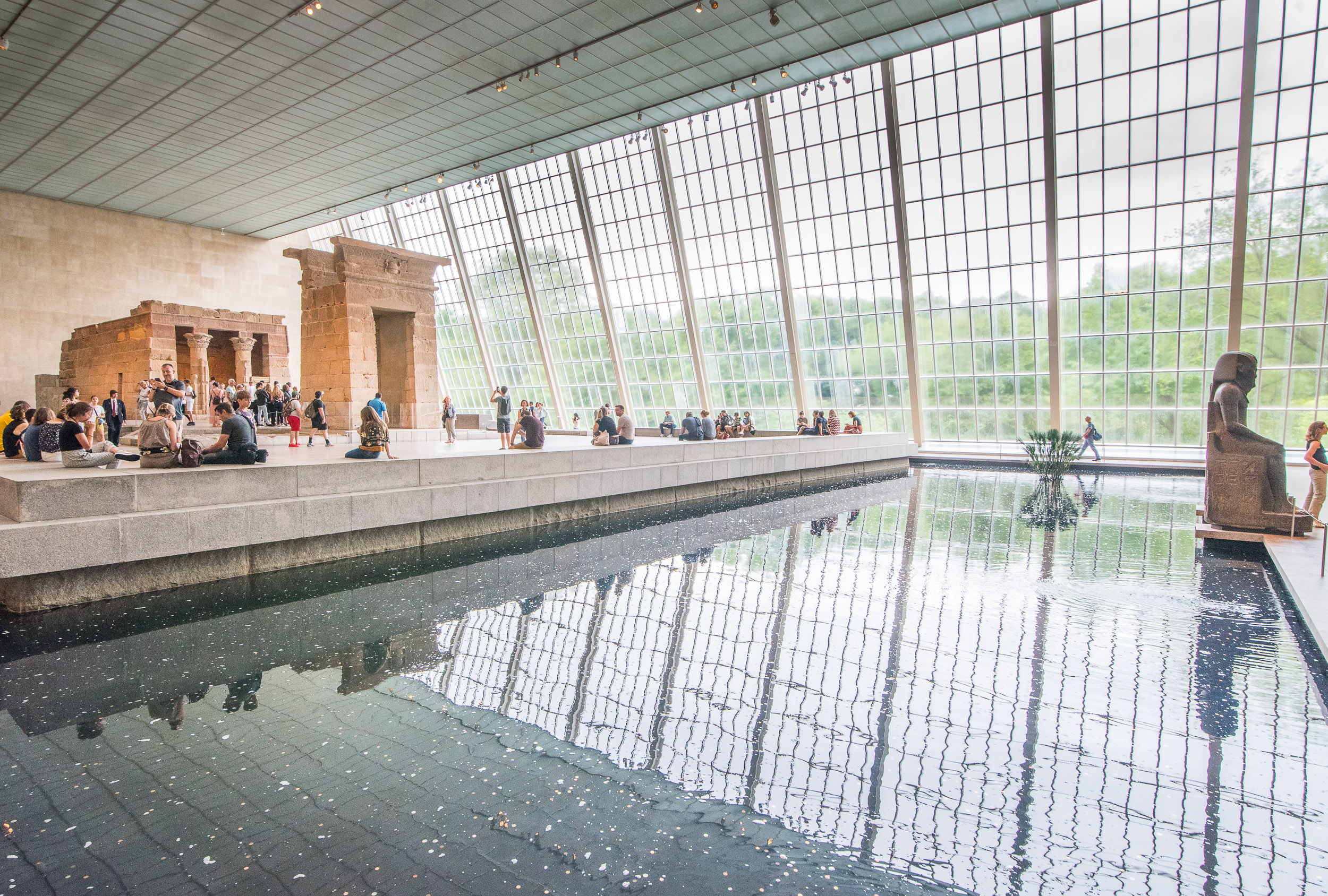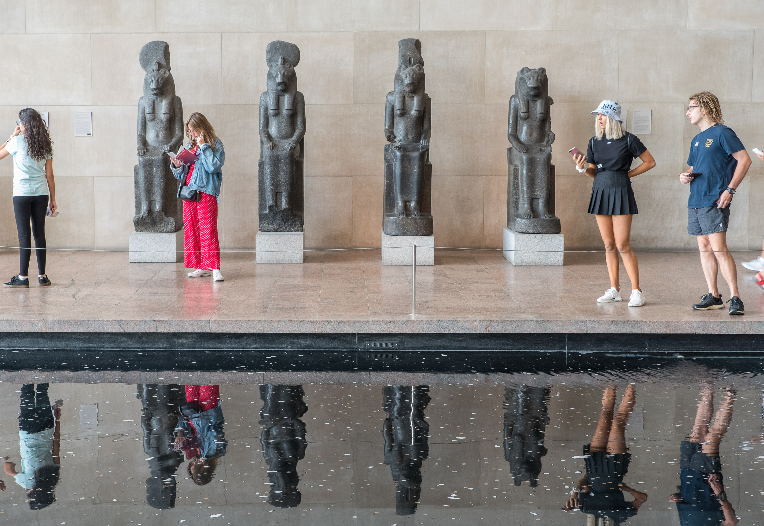 Una de las estatuas monumentales en el hall de entrada del Met.