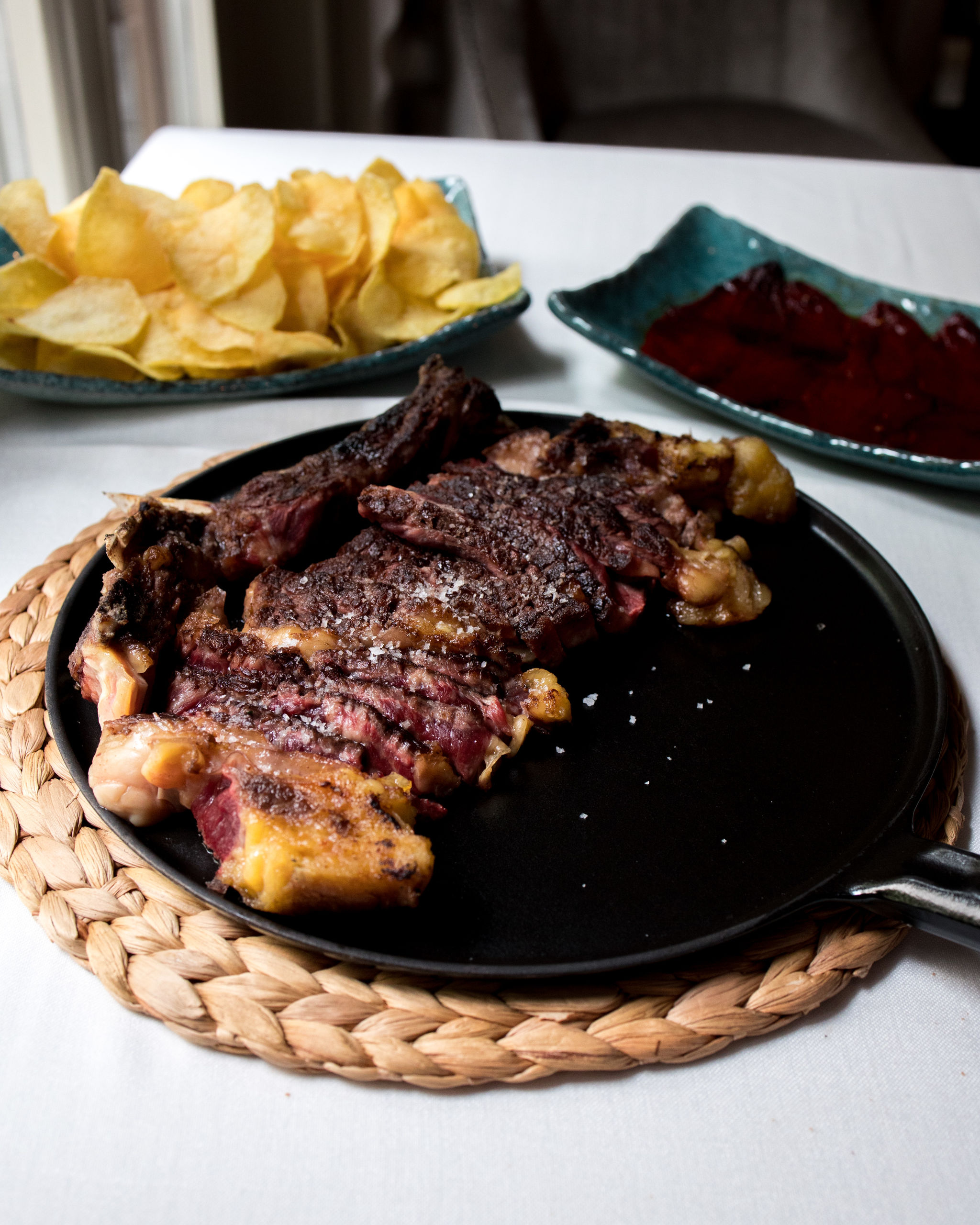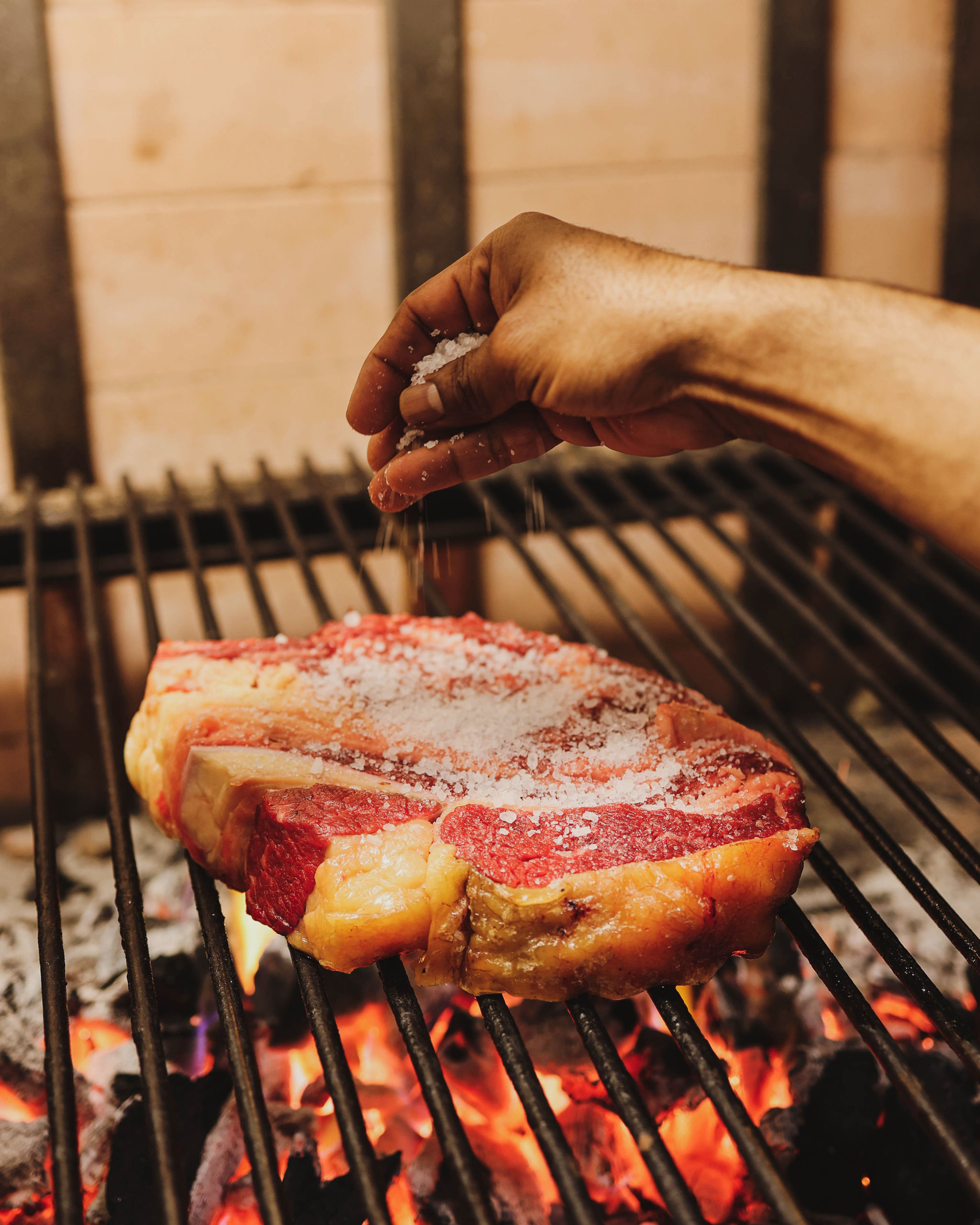Chuleta de raza Ayrshire a la parrilla de carbón vegetal de encina.