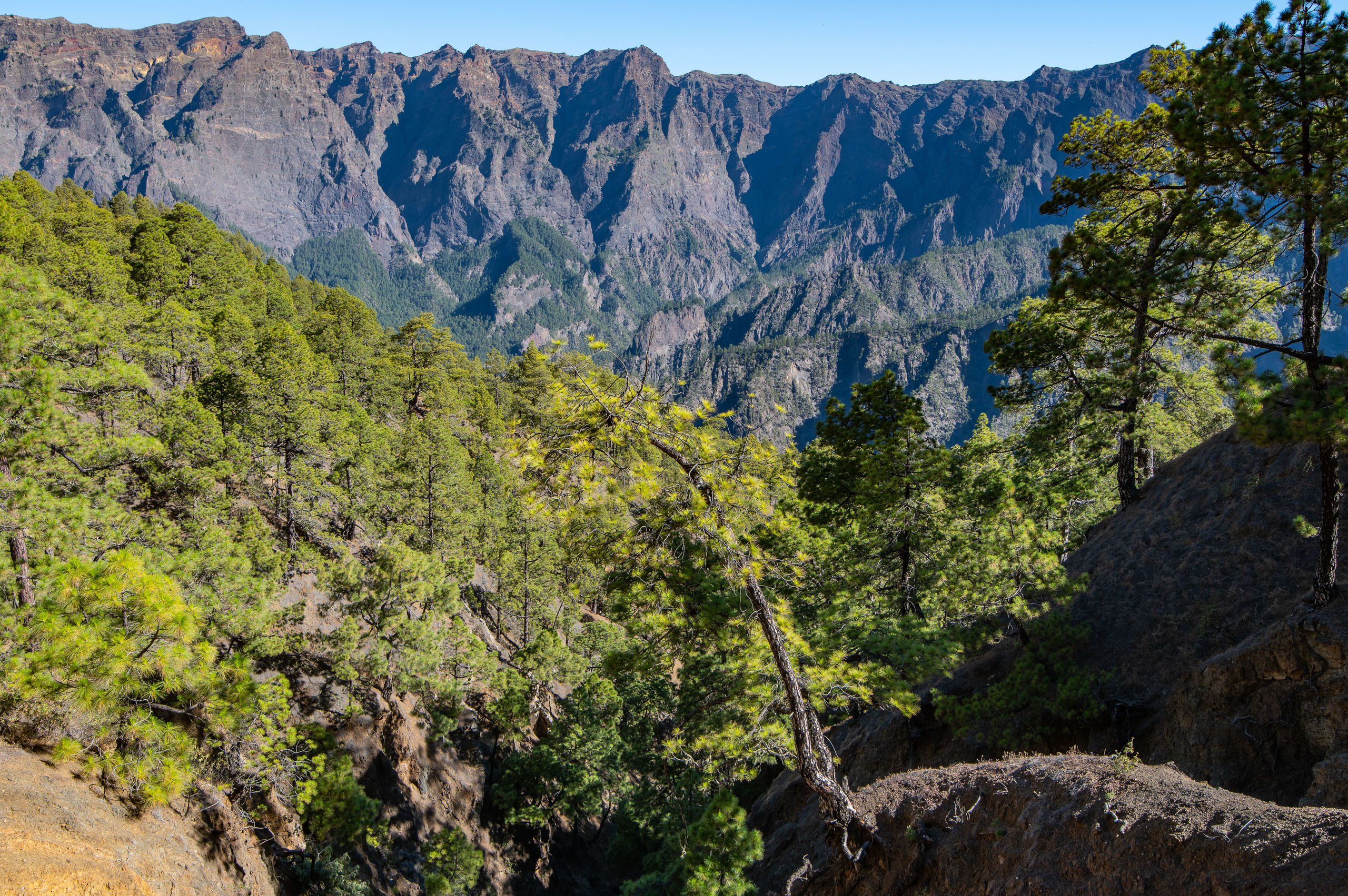 Los pinos se agarran a las paredes casi verticales de la Caldera.