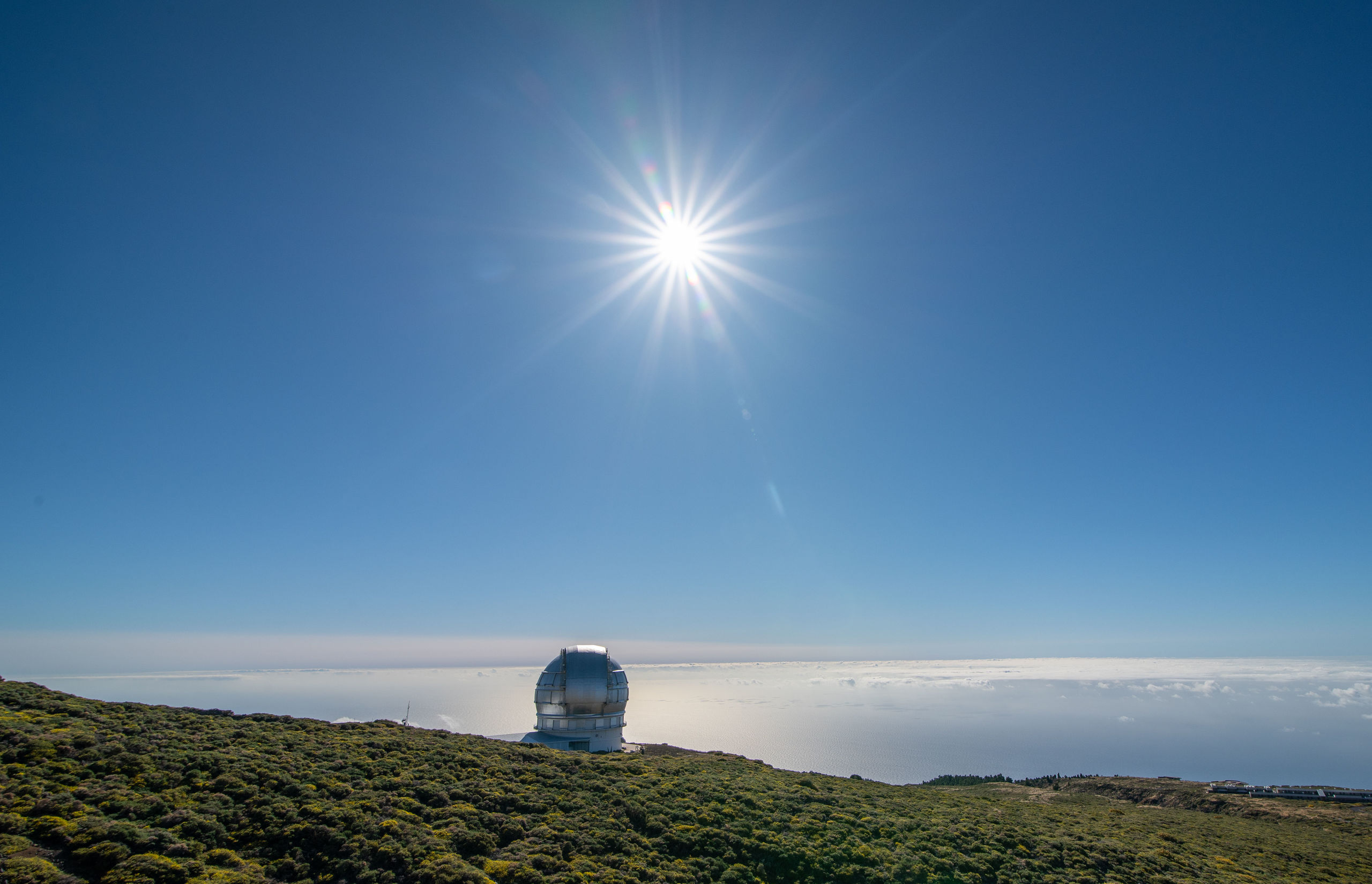 El Gran Telescopio de La Palma, se diría que mirandoo al sol desde cerca de la cumbre del Roque de los Muchachos.