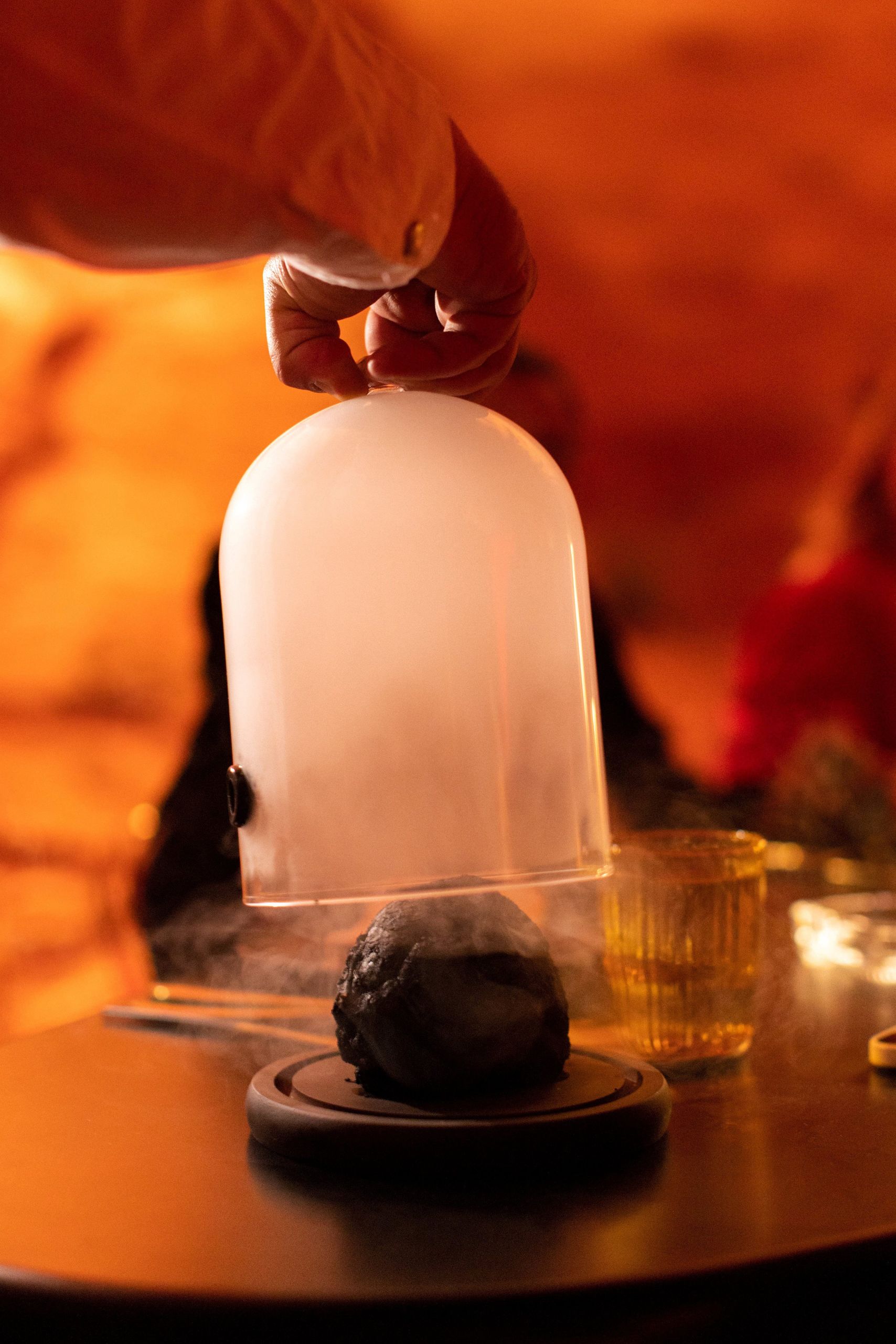 Esta experiencia inmersiva presenta un menú fijo fenomenal con los mejores ingredientes locales. Bompas & Parr se ha asociado con proveedores regionales para dar vida al corazón de un volcán en la mesa.