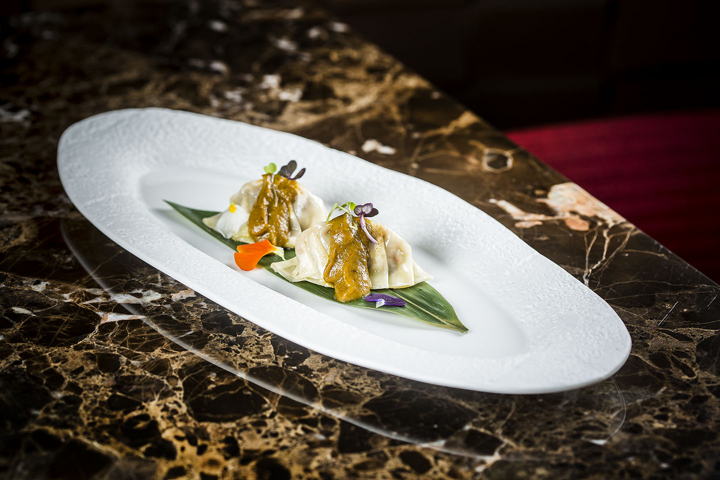 Dimsummex de bacalao en shiromiso y habanero con confitura de puerros.
