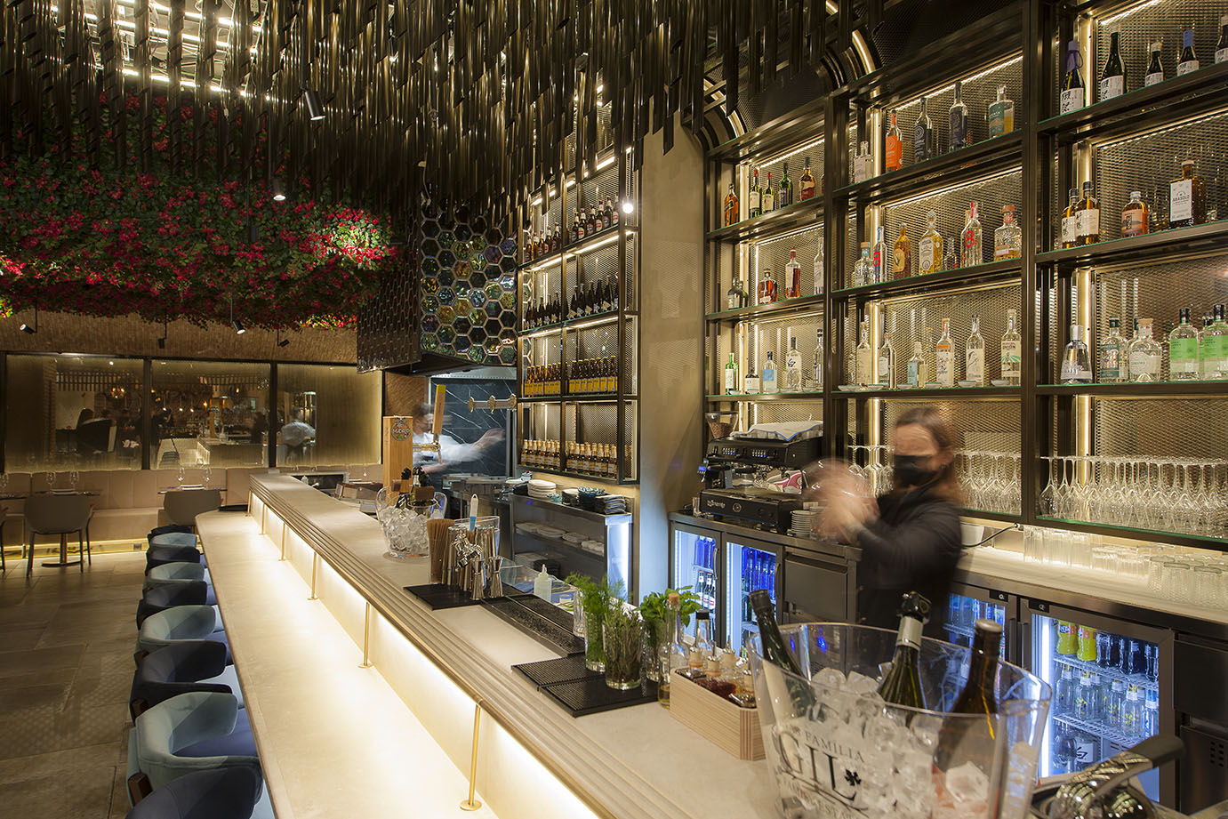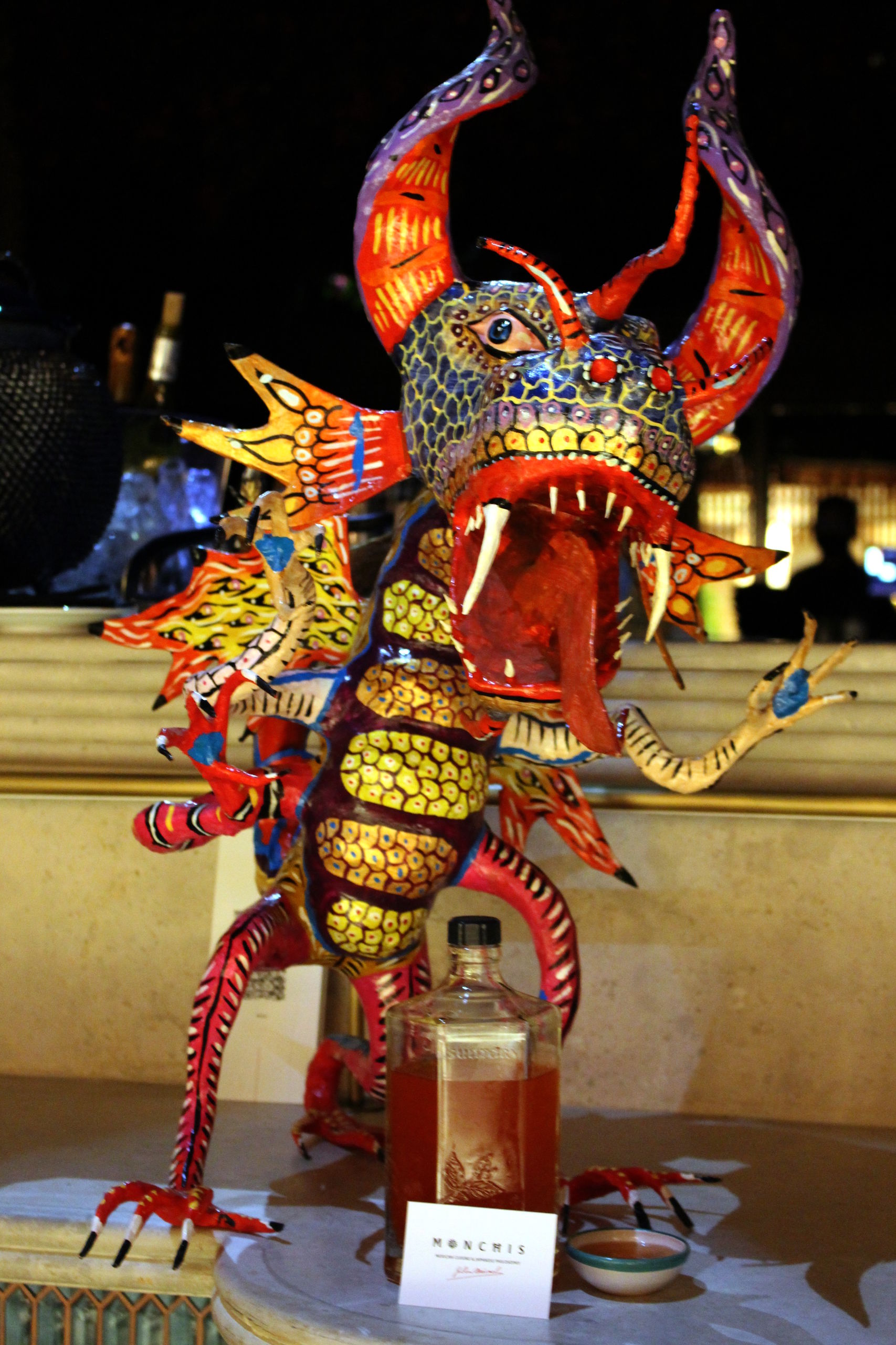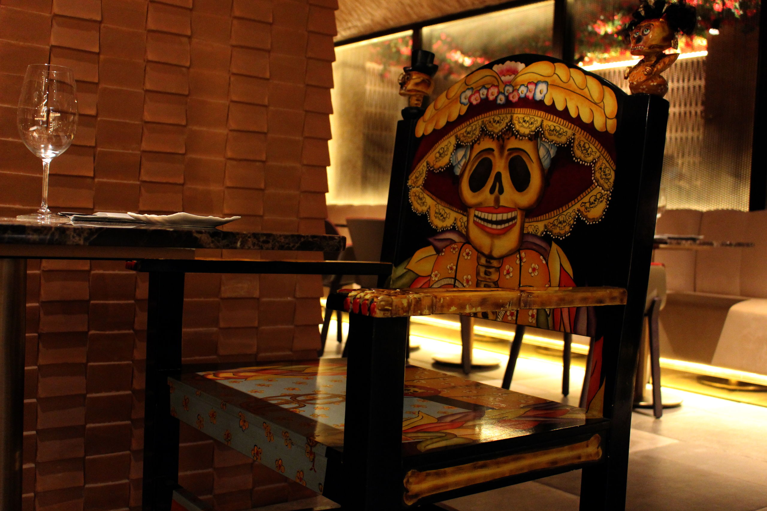 La barra de Monchis está concebida como si fuera el altar de una iglesia con ornamentación de los órganos eclesiales típicos de España y México en el techo.