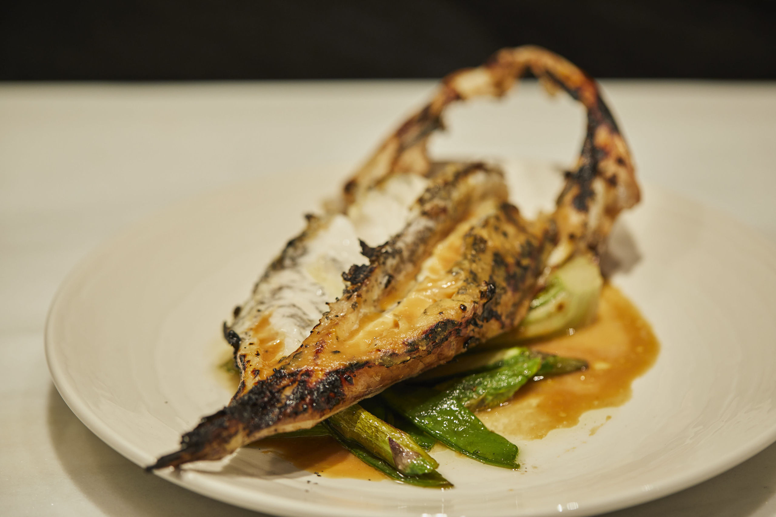 Los pescados a la brasa también son los protagonistas de Voraz como el rodaballo braseado con judías baby, trigueros y tirabeques salteados.
