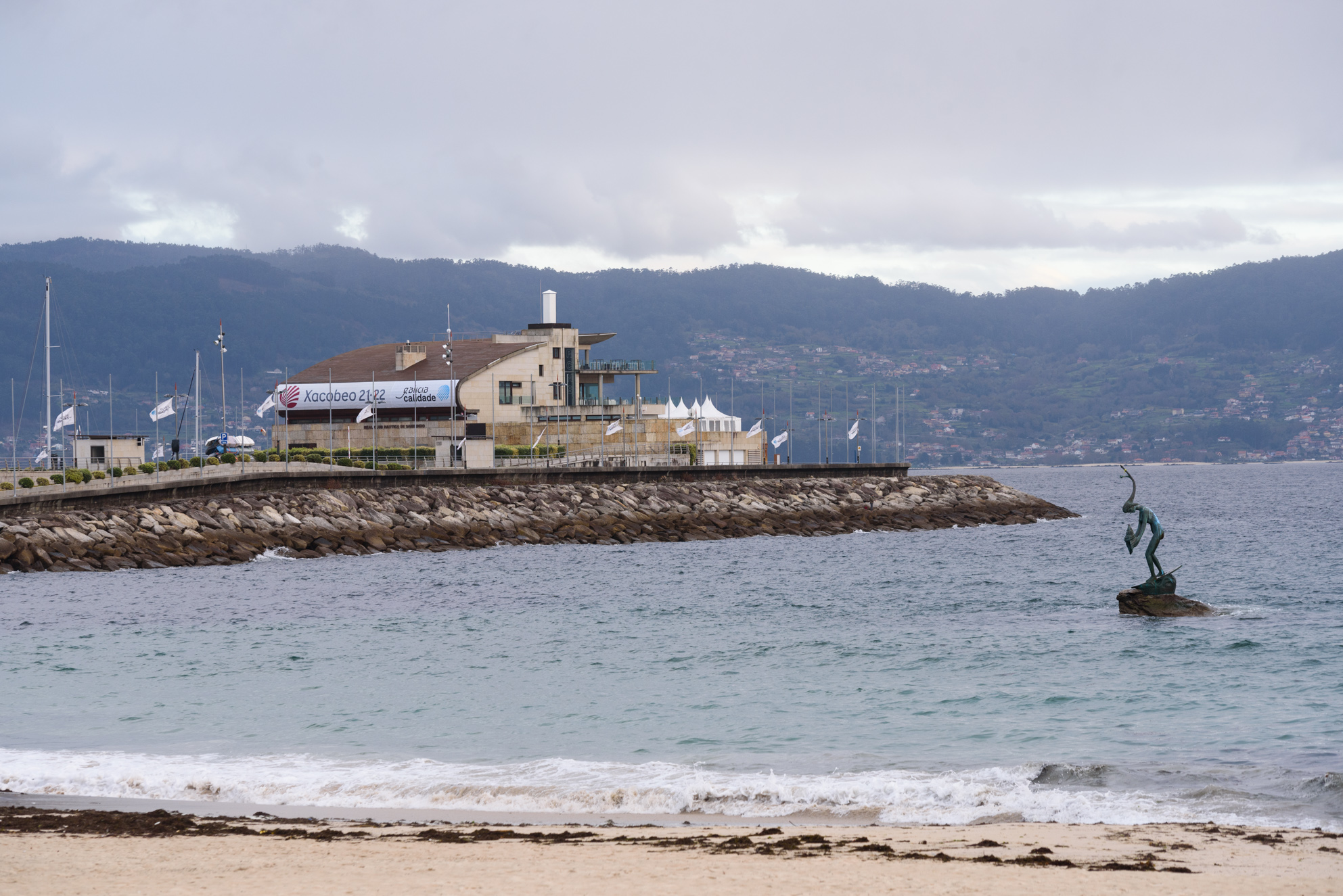 Llegando al extremo este de la playa se puede apreciar la famosa estatua de La Madama, obra del artista Alfonso Vilar Lamelas, situada en una roca a pocos metros de la costa.