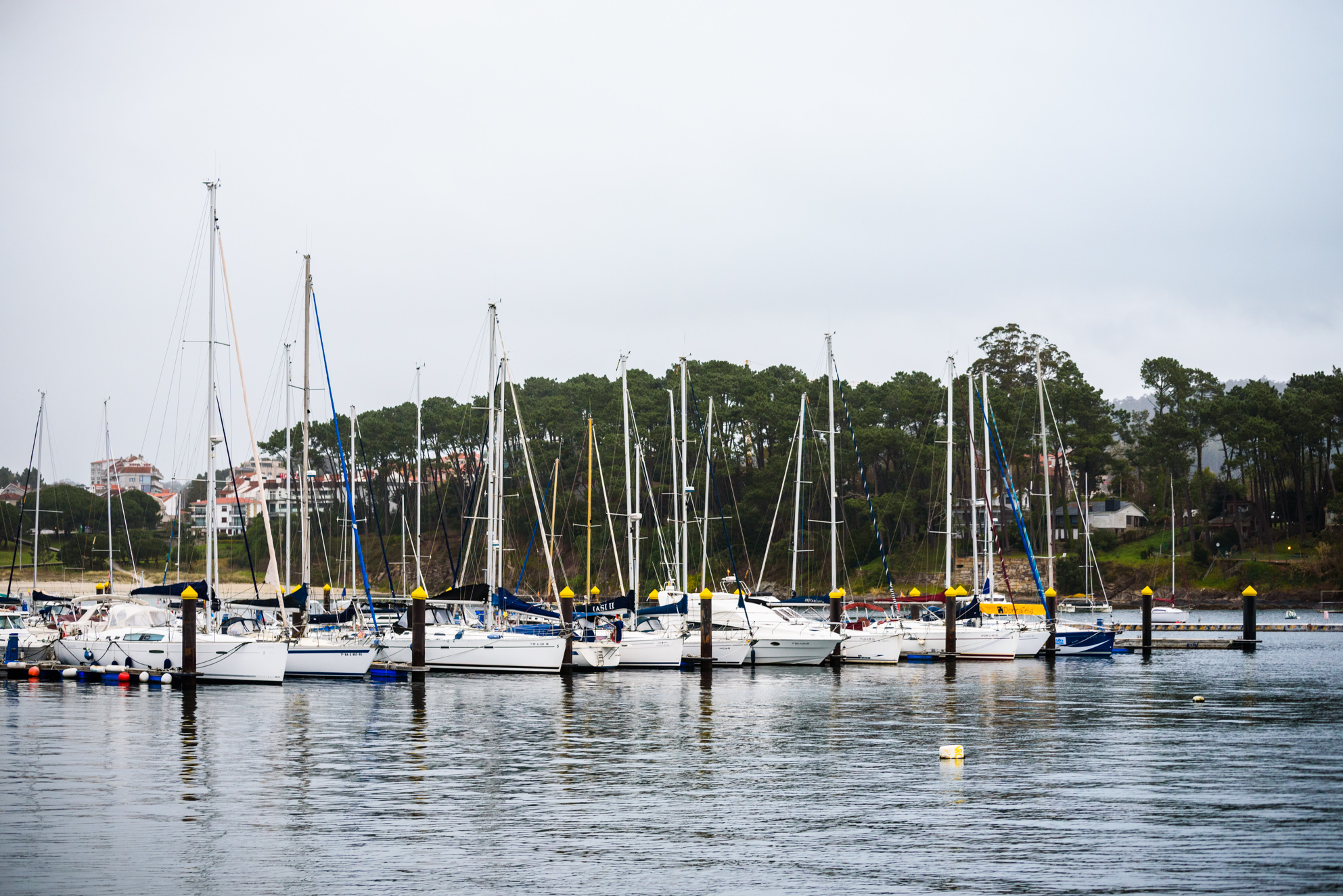 Varias embarcaciones dentro del Real Club Náutico de Sangenjo. Desde la fundación del Club Náutico todos los años se organizan distintas regatas de vela ligera en sus diferentes clases y de cruceros.
