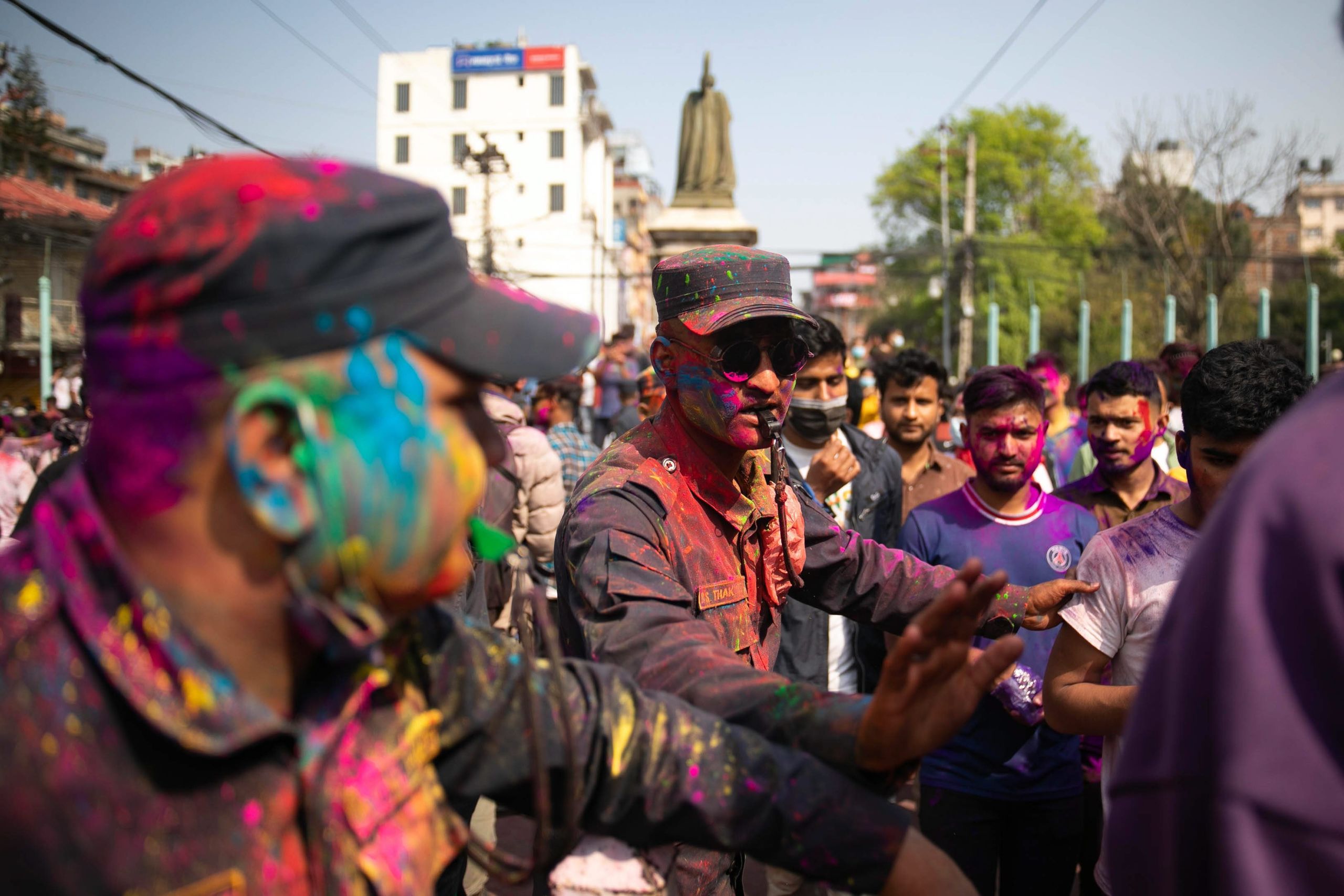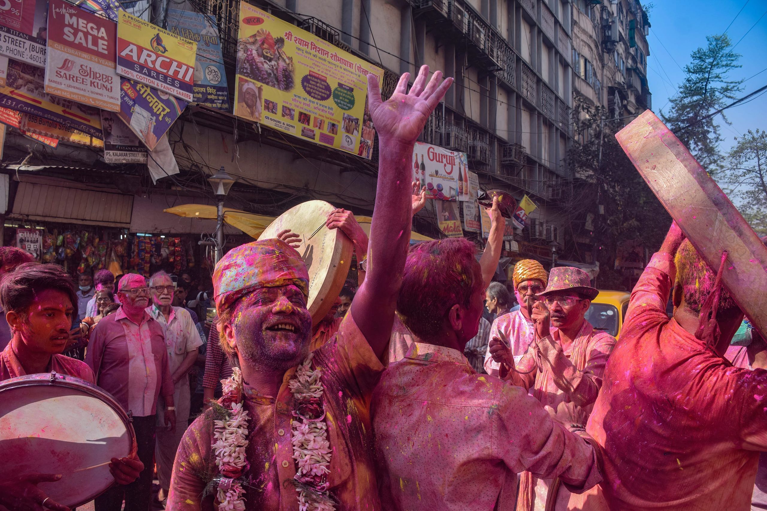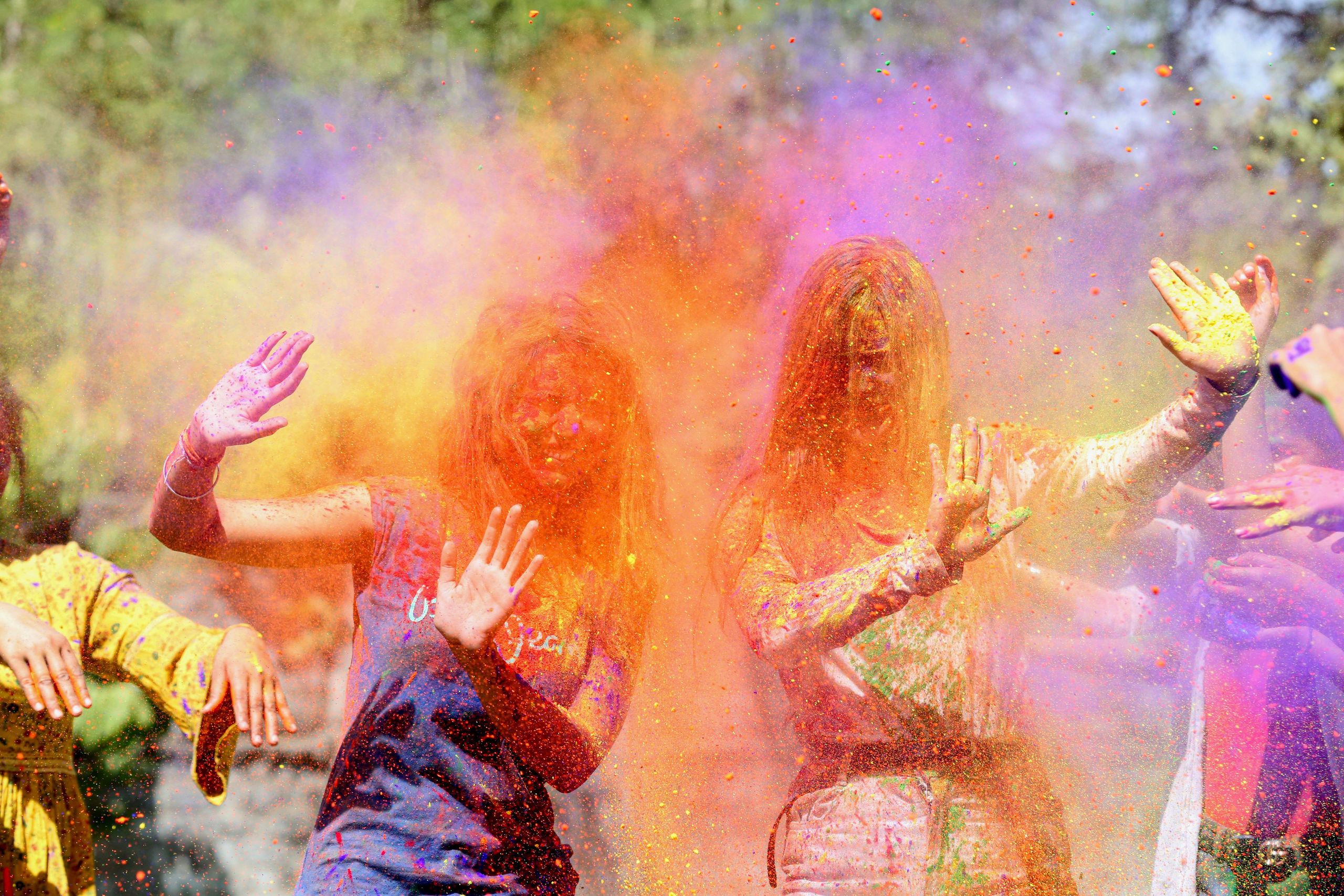 La celebración consiste en lanzarse polvos de colores brillantes y agua coloreada unos a otros, como símbolo de felicidad.