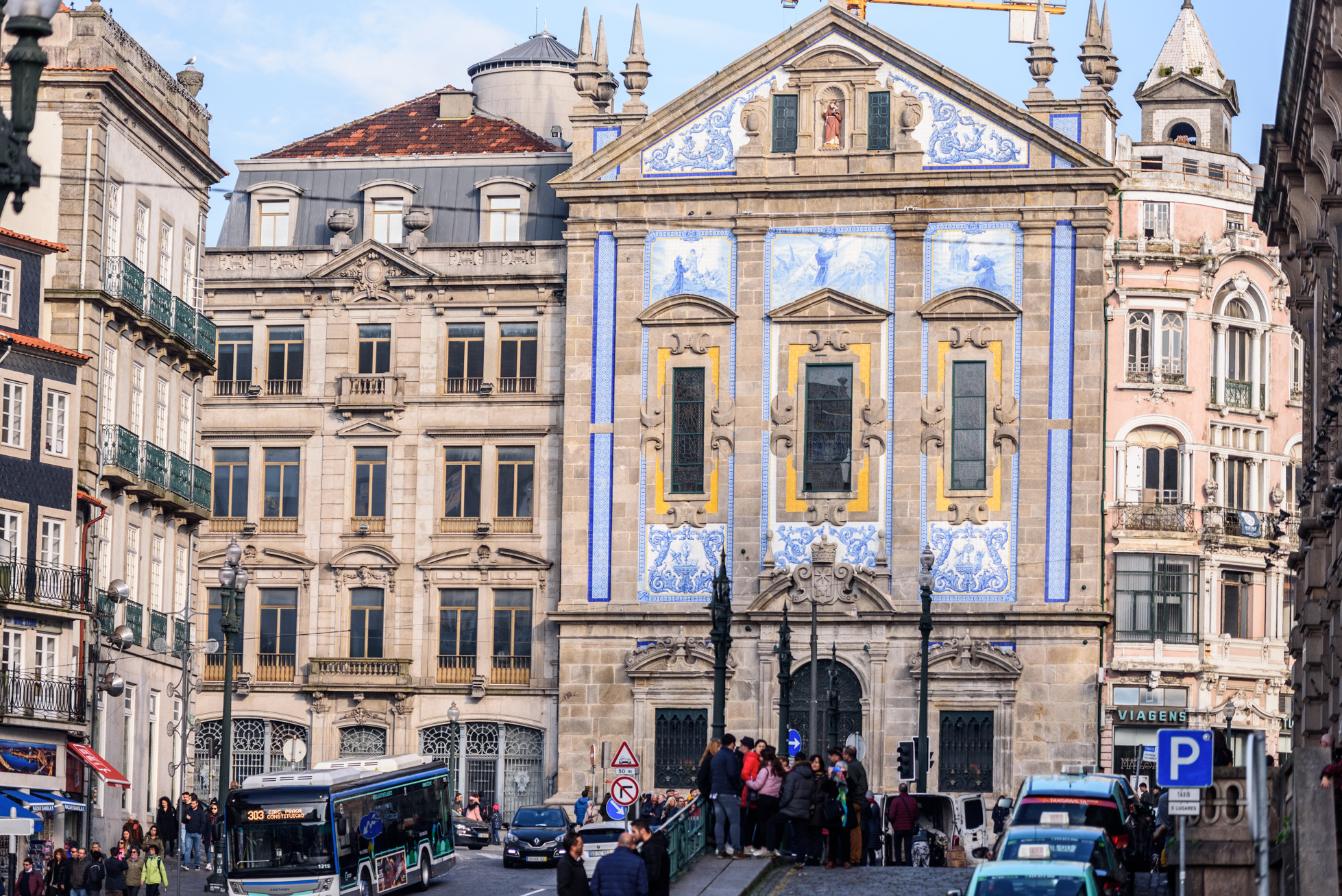 Cerca de la Caja de Depósitos, en la Plaza Gomes Texeira se encuentra la Iglesia del Carmen, uno de los puntos clave de una ruta por los azulejos de Oporto.