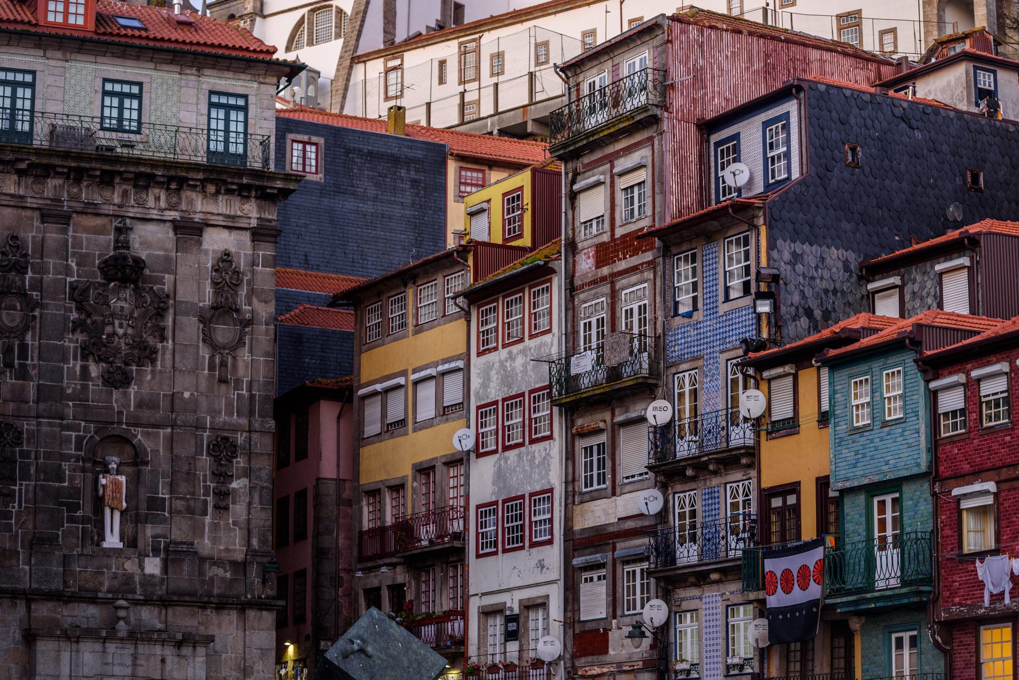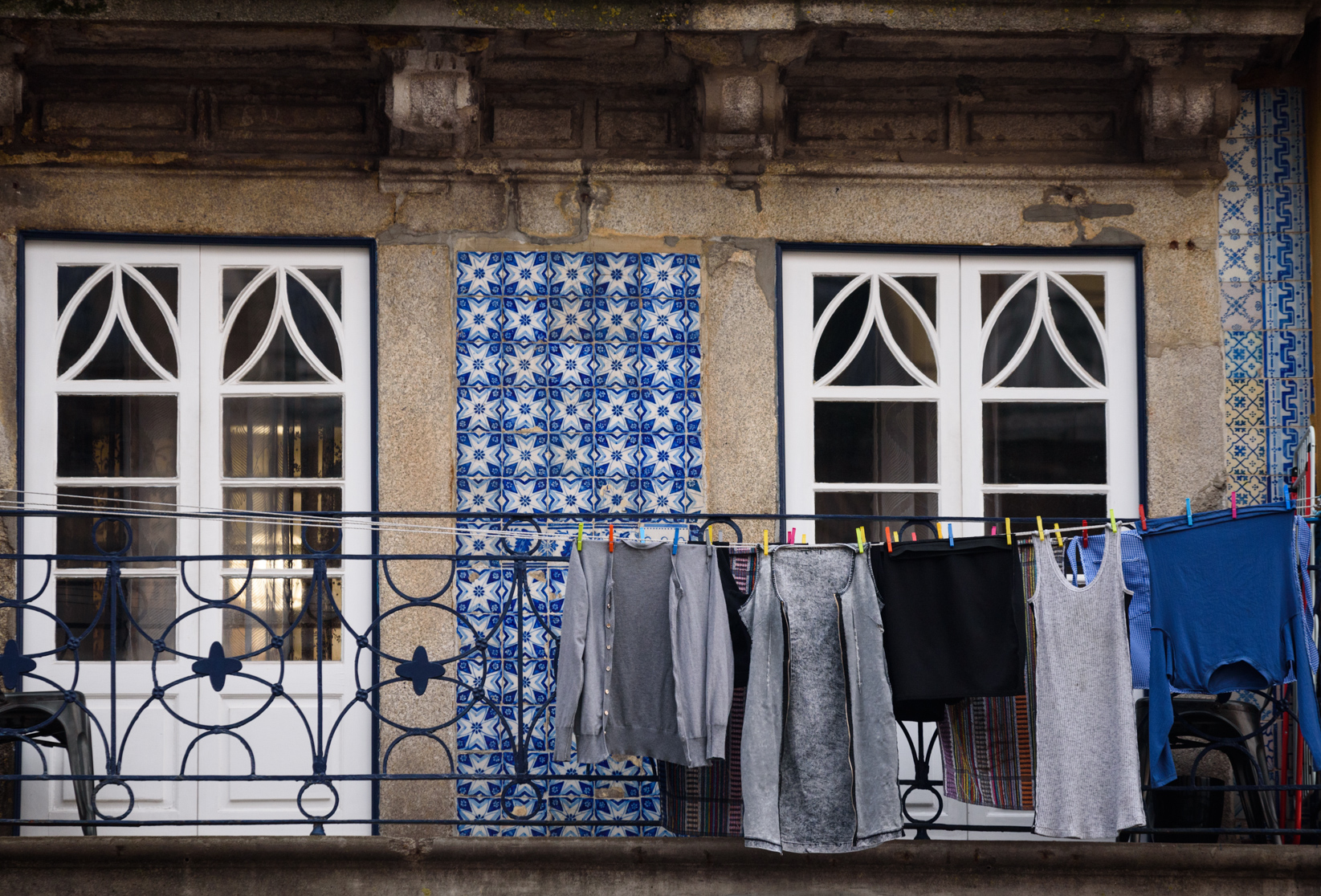 Es fácil ver vistosas fachadas en Oporto donde se mezcla el color de los azulejos con la ropa tendida en sus balcones.