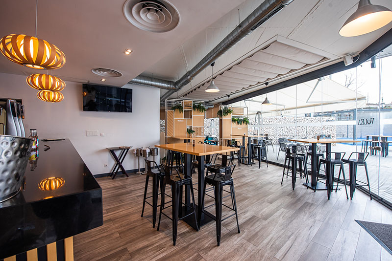 La terraza de Volea, con capacidad para 80 comensales, está perfectamente acondicionada para cada temporada del año.