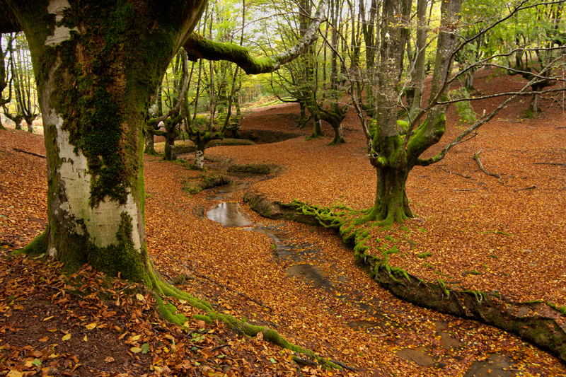 Este magnífico bosque de hayas, conocido como el hayedo de Otzarreta, se encuentra en el Parque Natural de Gorbea, en la provincia de Vizcaya, País Vasco. Es un lugar misterioso y mágico, sacado de un cuento de hadas y especialmente fotogénico.