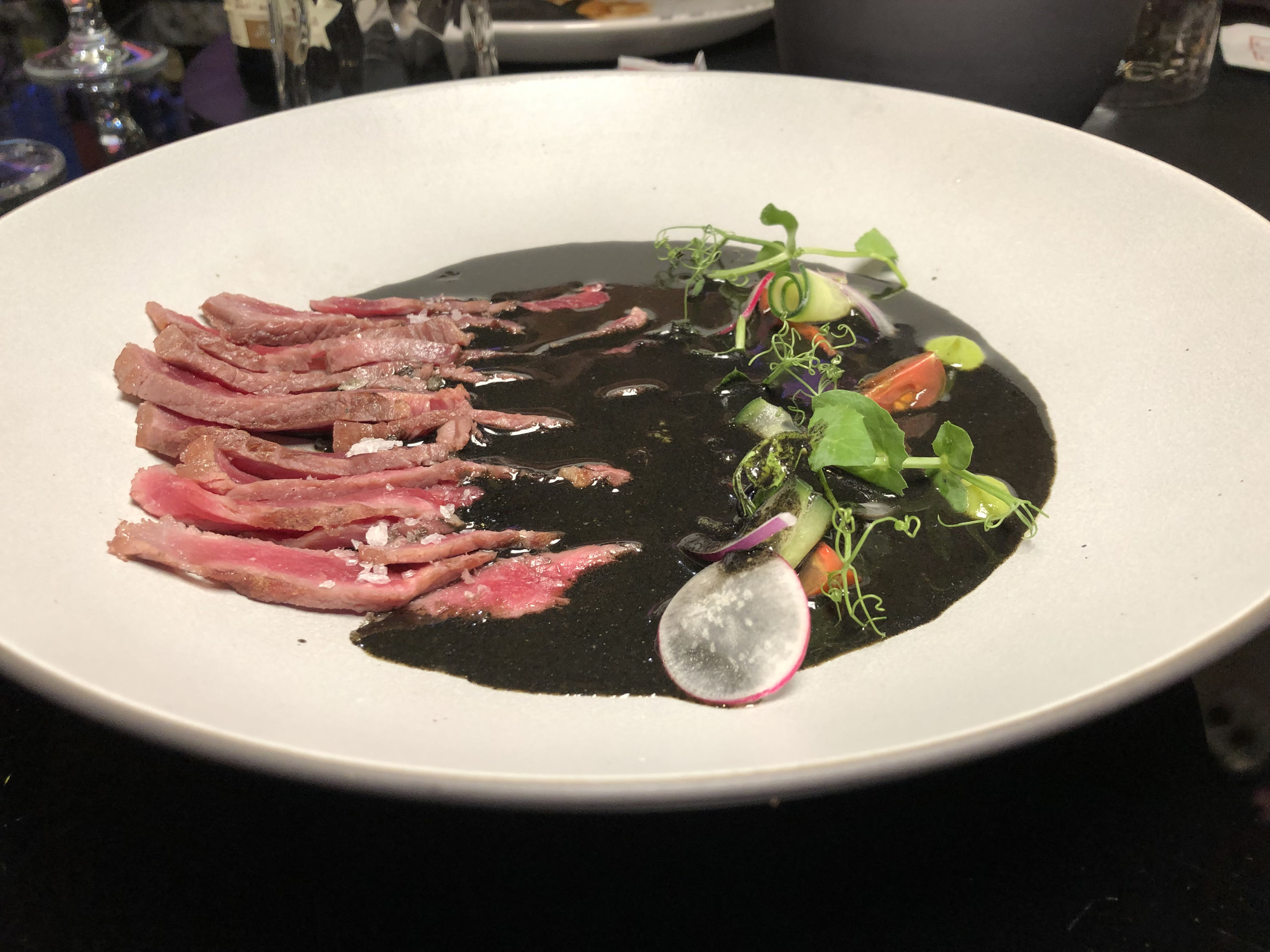 Probamos la tetela de habas y manchamanteles (12,5€) elaborada con una masa de maíz rellena de habas, mole manchamantel oaxaqueño y flor de calabaza y el levanta muertos de Entrecot (19,5€), carne ligeramente pasada por las brasas, y aguachile negro de habanero; todo refrescado por láminas de pepino, rabanito rojo y zumo de lima. Dos deliciosos entrantes que te llevan rumbo a México pero que desde Madrid te invitan a seguir conociendo las bondades de su gastronomía.