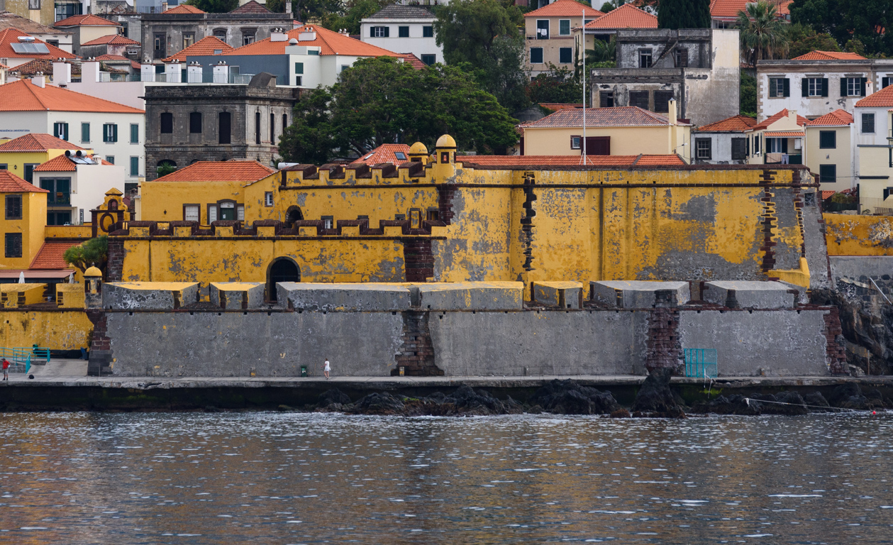 De fachada amarilla, el fuerte de Sao Tiago, una de las tres fortificaciones de Funchal que todavía se mantienen en pie. Su interior alberga el Museo de Arte Contemporáneo, con una colección de arte portugués de los años 60.