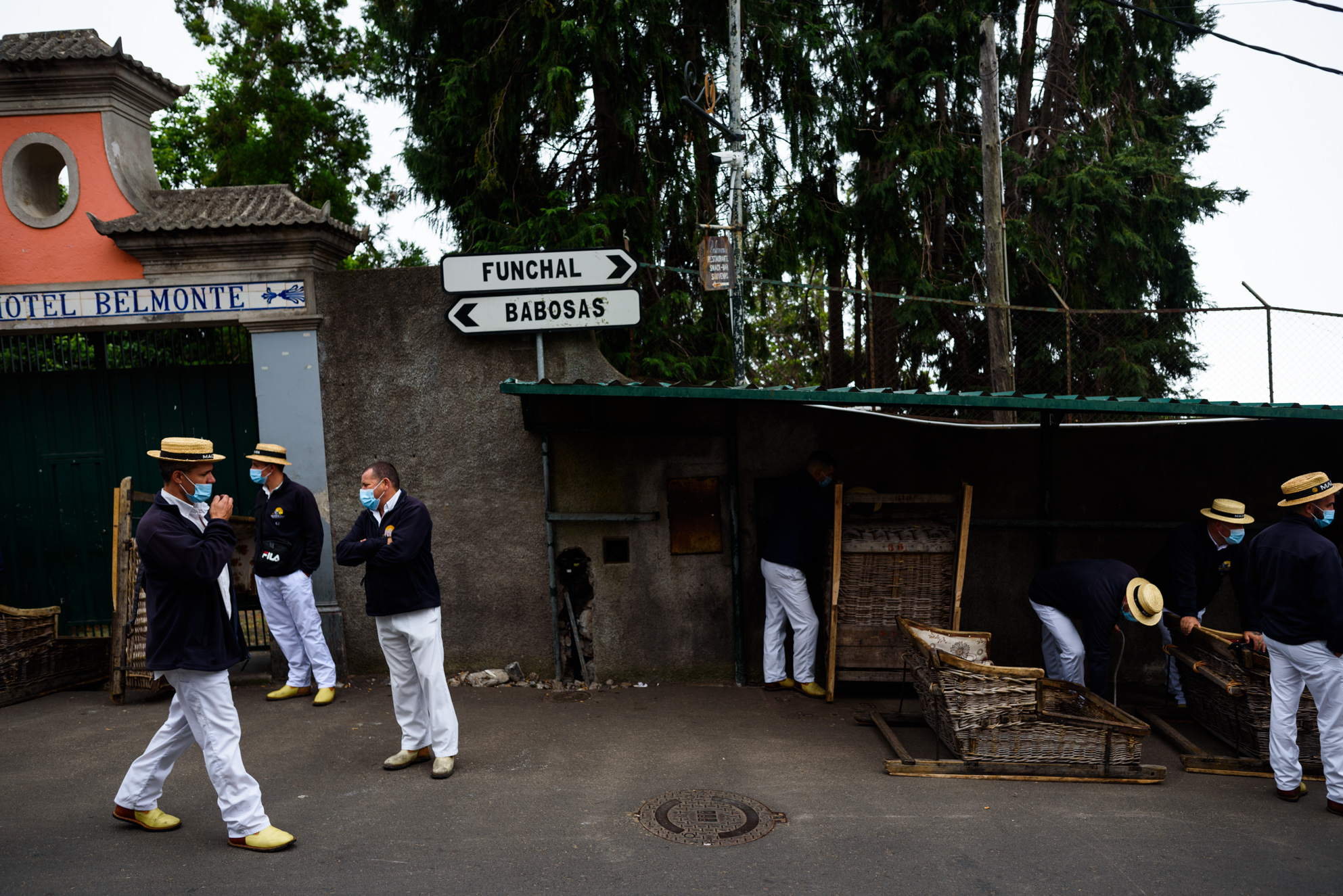 Los carreiros do Monte ofrecen un descenso más “tradicional” y también más turístico a bordo de un carro de mimbre, a modo de trineo, que empujan varios carreiros colina abajo, vestidos con camisa y pantalones blancos y sombrero de paja.