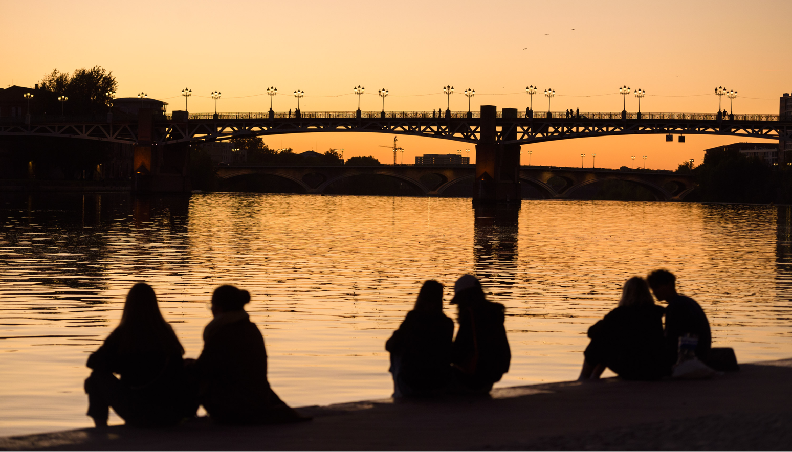 Parejas viendo el atardecer en el río Garona de Toulouse, el mejor rincón de esta maravillosa ciudad del sur de Francia para besarse.