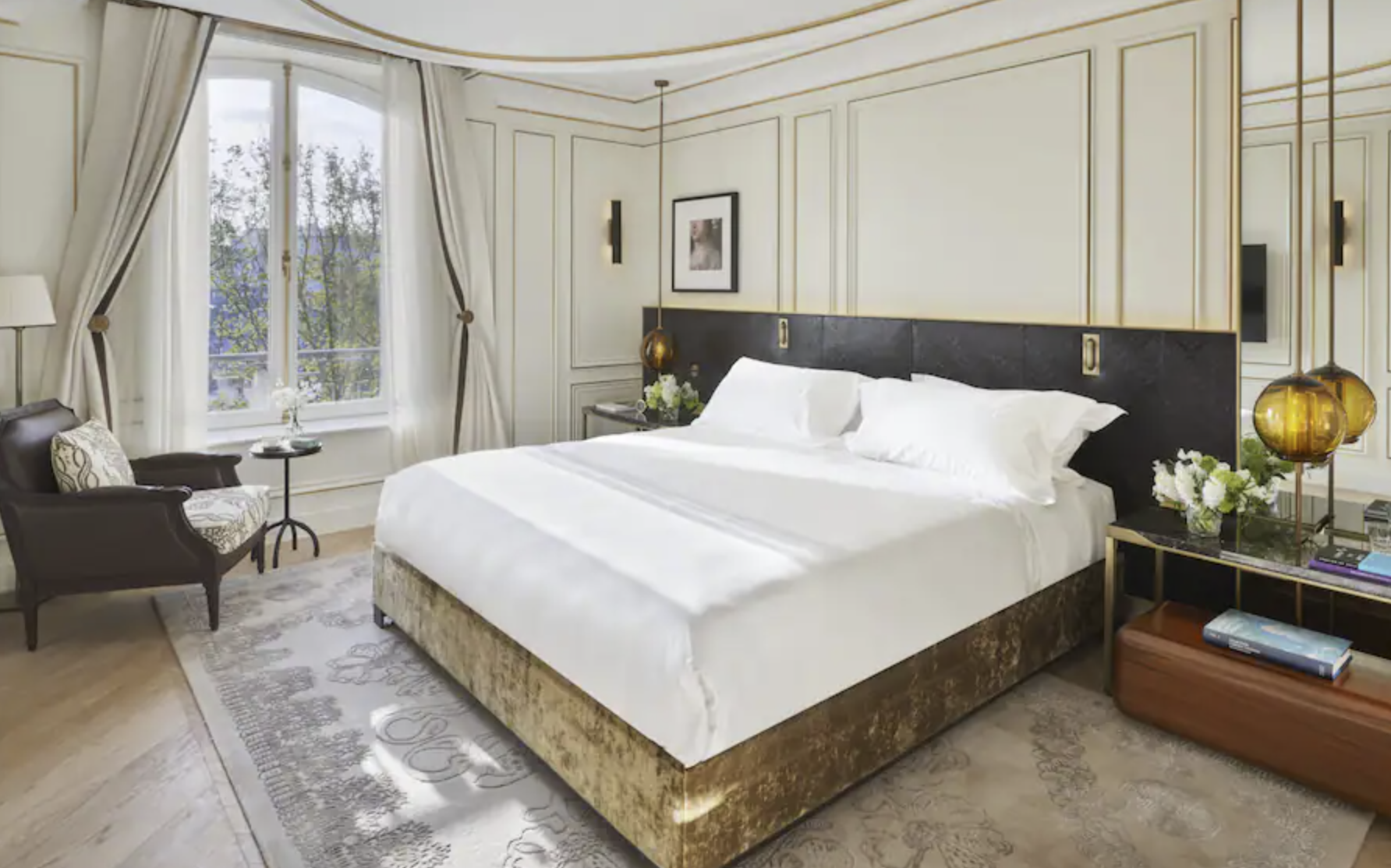 Ocupando el décimo lugar en la lista, esta suite de hotel Baur au Lac, en la capital suiza tiene vista al patio del hotel y vistas impresionantes del lago de Zúrich. Esta suite cuesta a los viajeros alrededor de 5500 euros por pasar la noche, cuenta con una cama doble extragrande, baño de mármol y una decoración cálida, íntima y reconfortante que refleja el entorno natural.