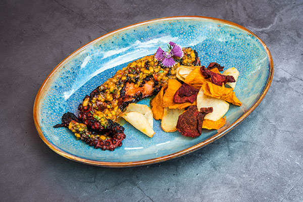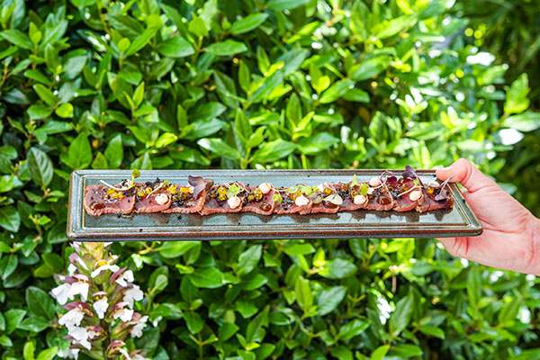 Tataki de atún rojo con mahonesa de avellana tostada y caviar de AOVE.