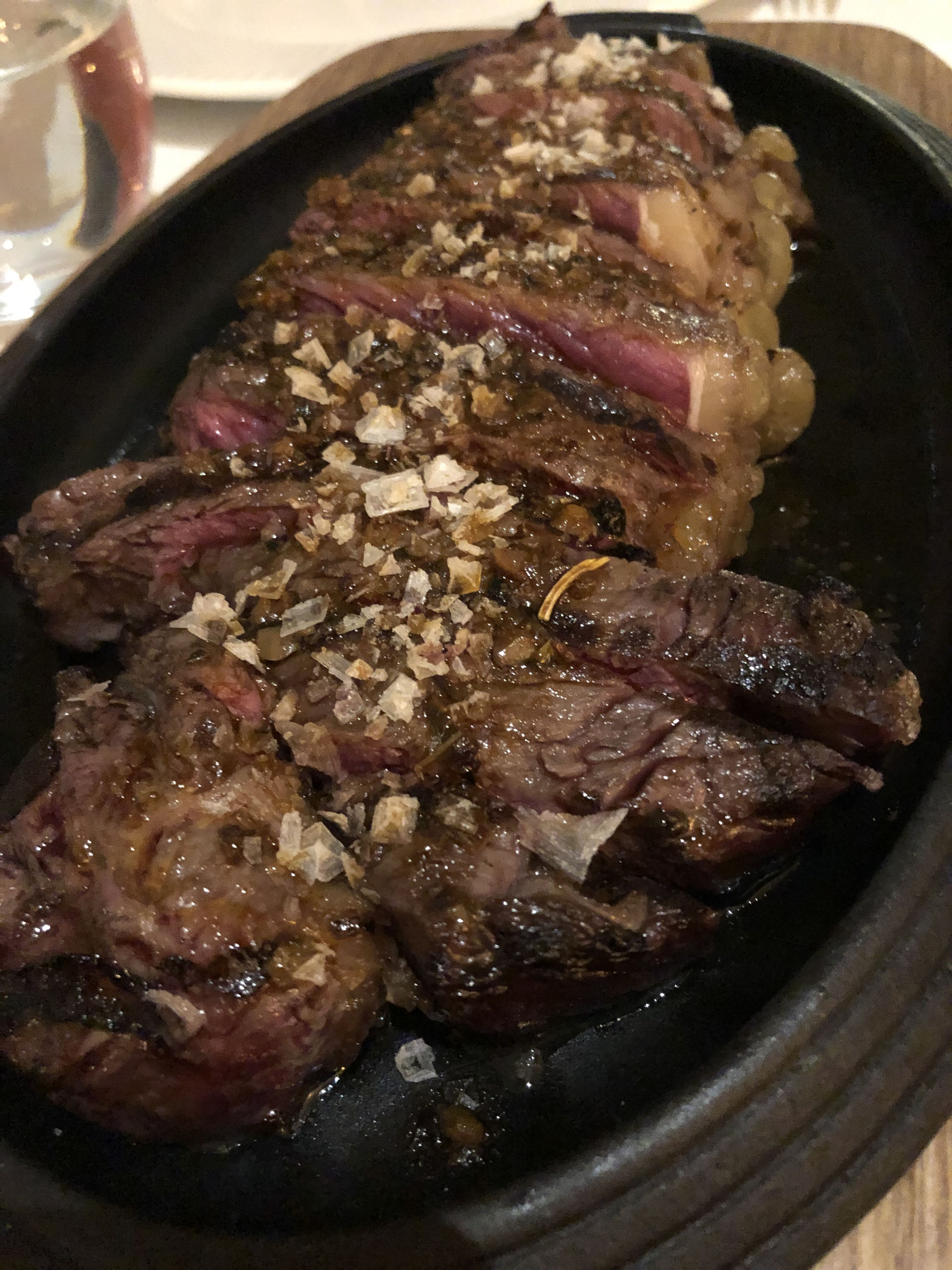Y si eres más de carne tienes una muy buena oferta de carnes y parrilla. El lomo bajo madurado 45 días con chimichurri (27€) con guarnición de pimientos de Padrón y patata asaca con queso, es un muy buen representante de su calidad y la aportación sobresaliente de la salsa típica de los asados argentinos que incorporada a lomo bajo potencia su sabor con el toque justo para no camuflarlo.