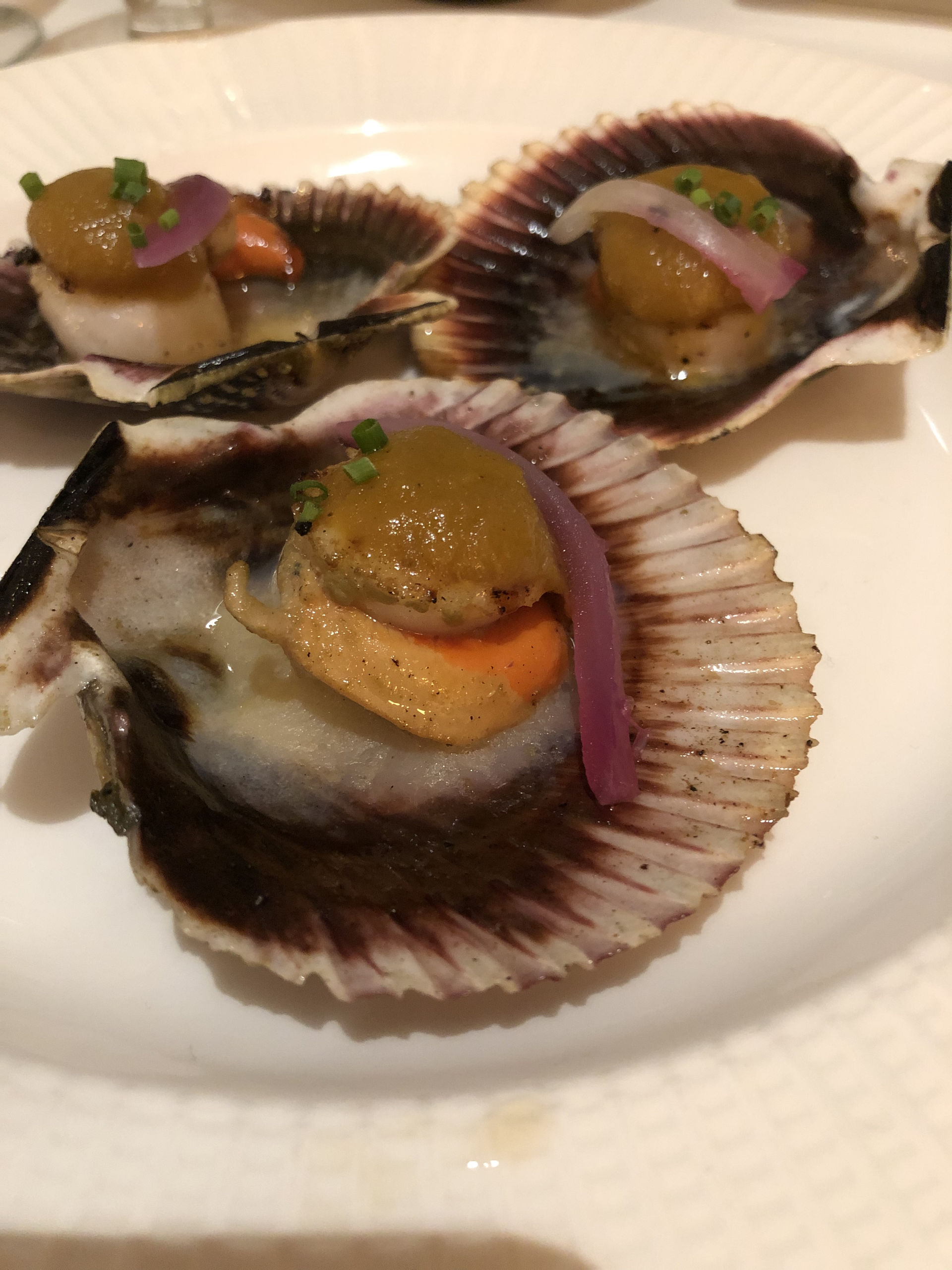 Pero si quieres comprobar de verdad la calidad de la materia prima recomiendo probar sus deliciosas zamburiñas a la plancha con vinagreta de cítricos (19€/6uds.), el ácido de la salsa combina de maravilla con el sabor yodado del molusco. También de temporada puedes disfrutar con unas muy ricas alcachofas a la brasa con crema de setas shiitake y jamón ibérico bellota DO Guijuelo (23€).
